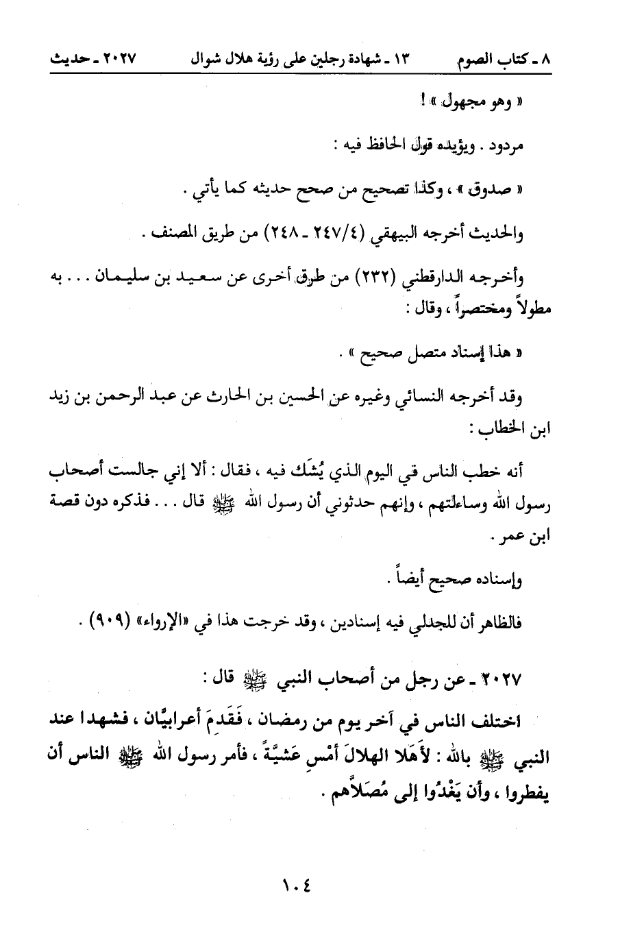 2027- عن رجل من أصحاب النبي صَلَّى اللَّهُ عَلَيْهِ وَسَلَّمَ قال: