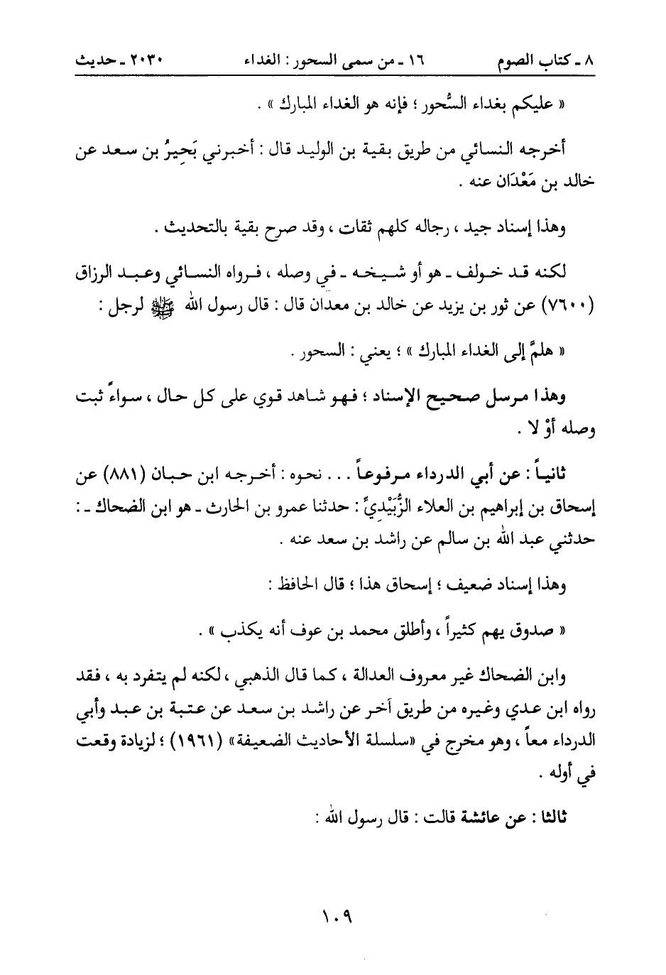 " عليكم بغداء السُحور؛ فإنه هو الغداء البارك ".