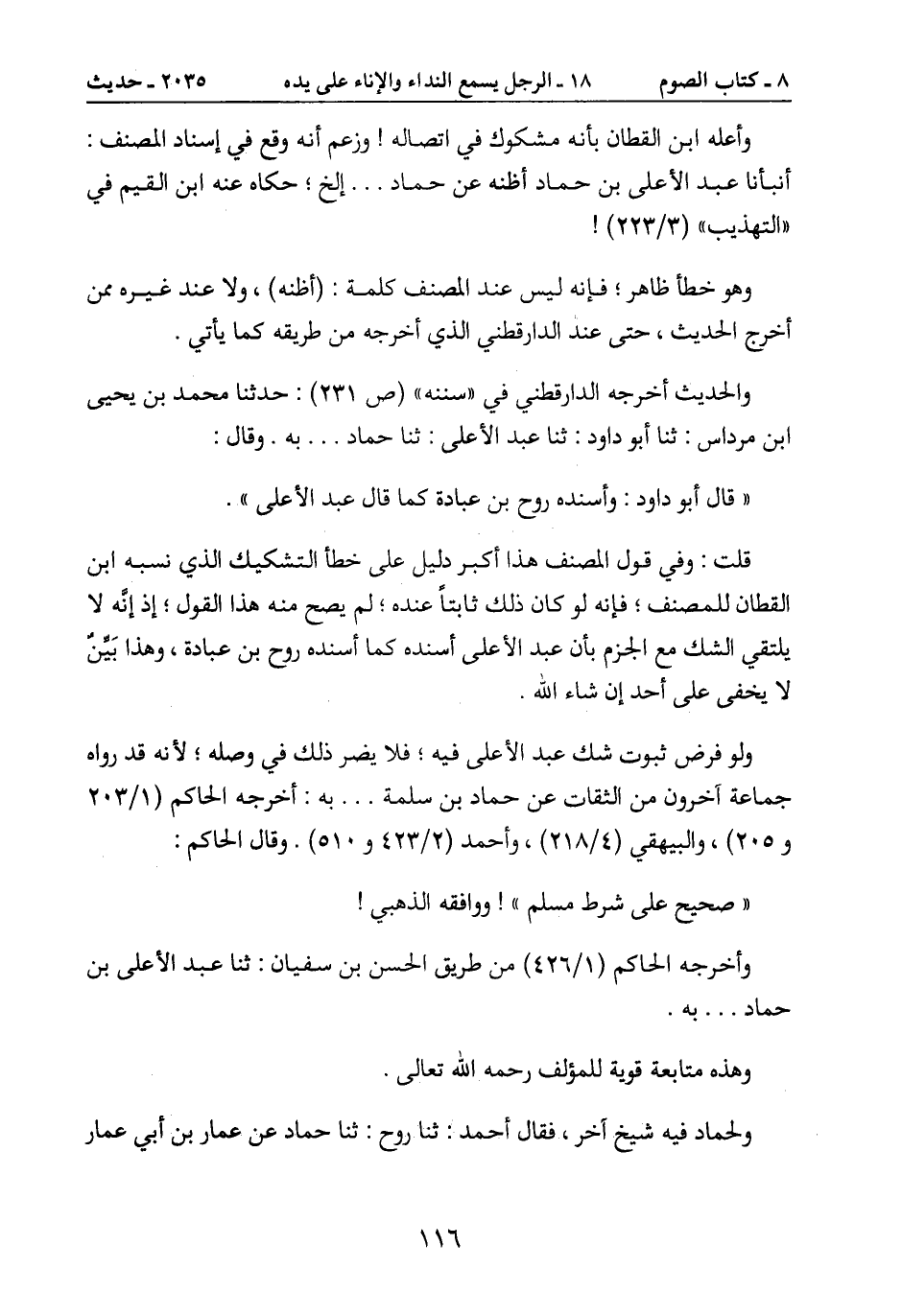 يلتقي الشك مع الجزم بأن عبد الأعلى أسنده كما أسنده روح بن عبادة، وهذا بَينٌ