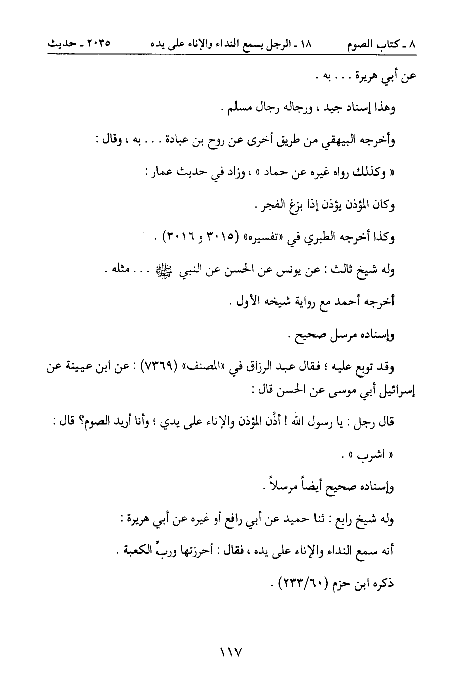 قال رجل: يا رسول الله! أذَّن المؤذن والإناء على يدي؛ وأنا أريد الصوم؟ قال: