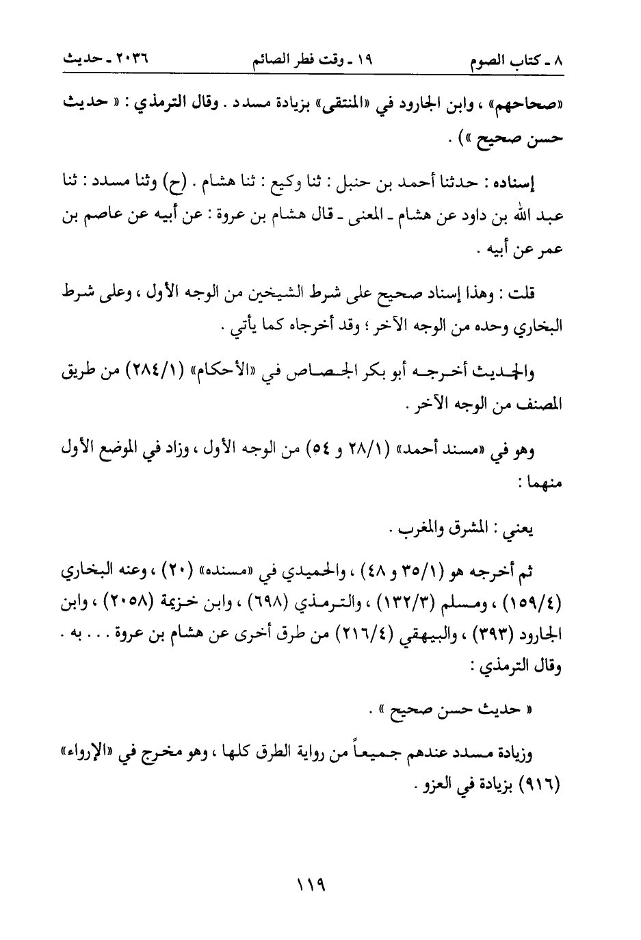 وزيادة مسدد عندهم جميعاً من رواية الطرق كلها، وهو مخرج في "الإرواء "
