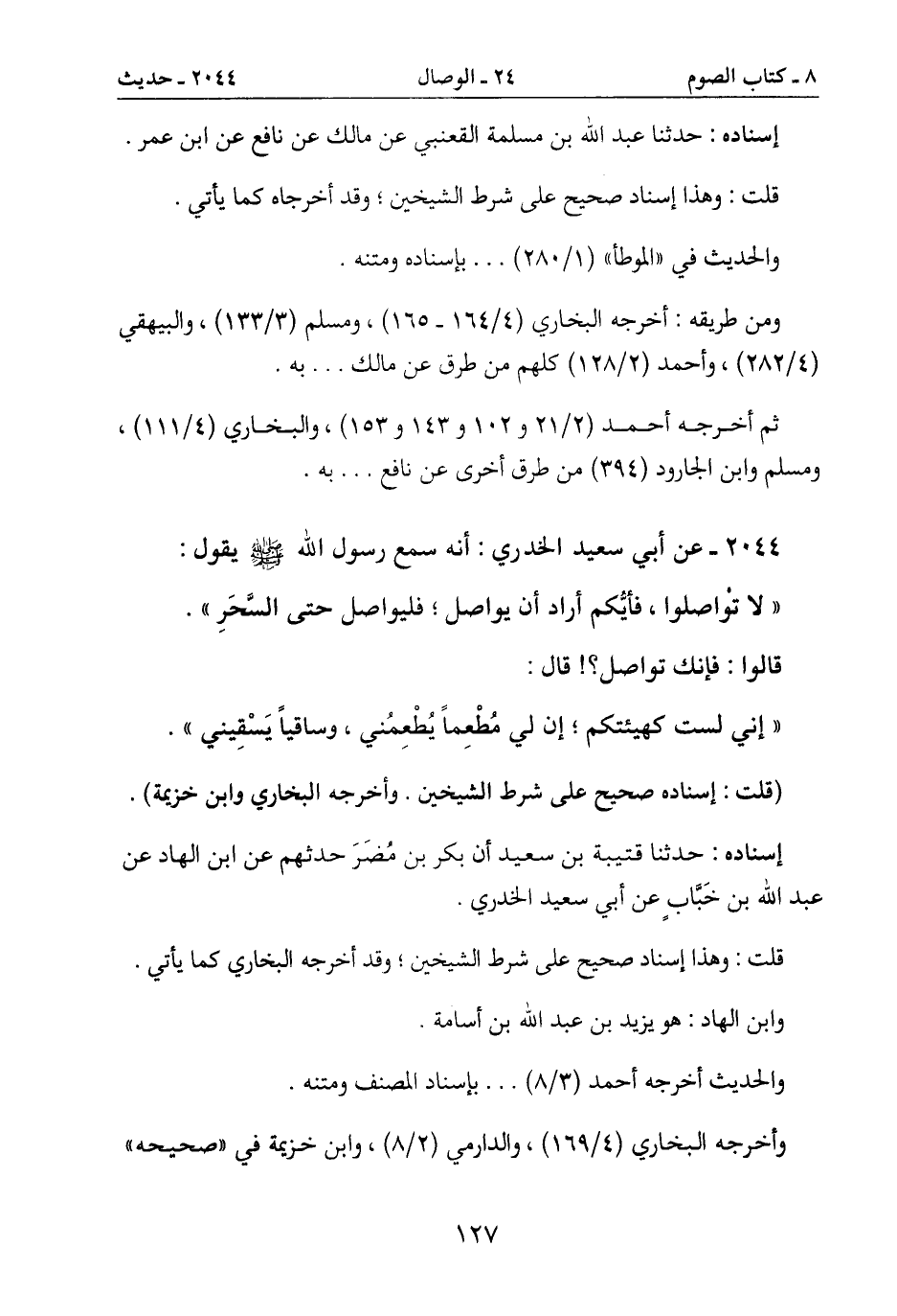 (قلت: إسناده صحيح على شرط الشيخين. وأخرجه البخاري وابن خزيمة) .