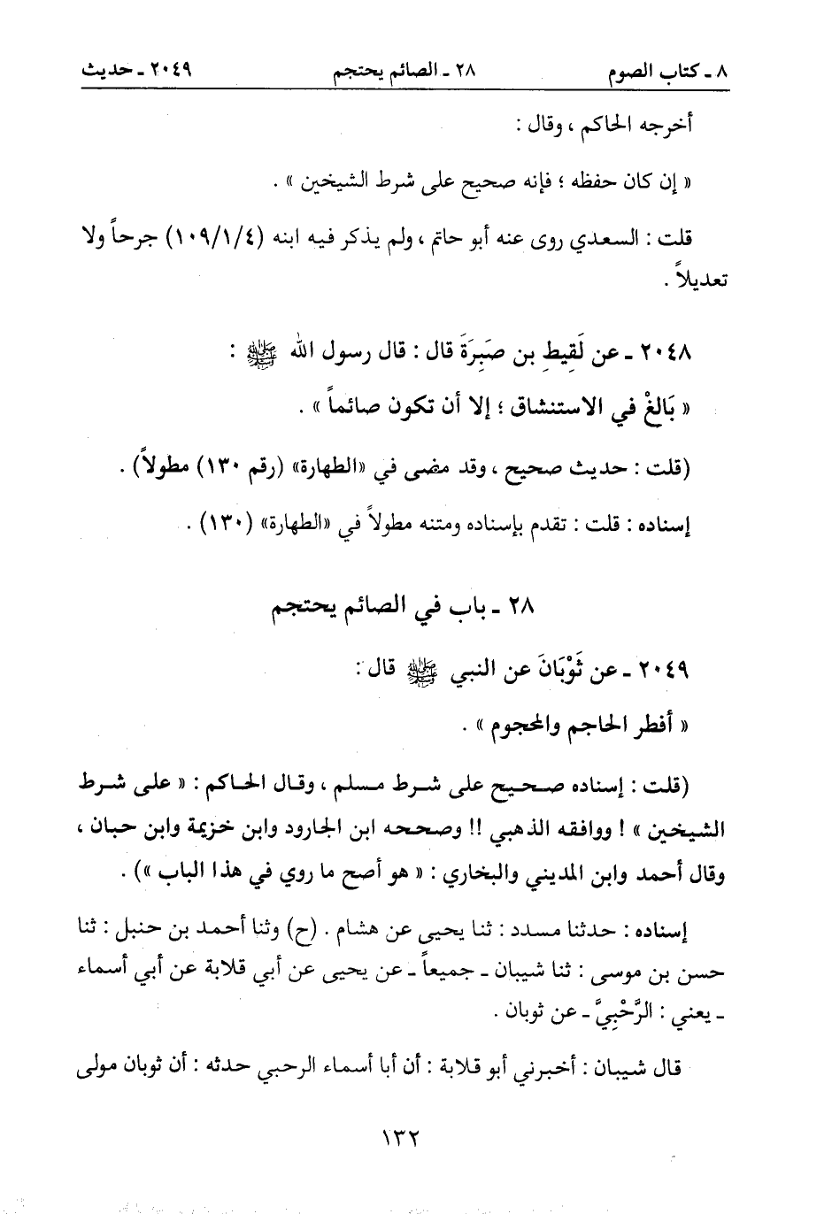 2048- عن لَقِيطِ بن صَبِرَةَ قال: قال رسول الله صَلَّى اللَّهُ عَلَيْهِ وَسَلَّمَ: