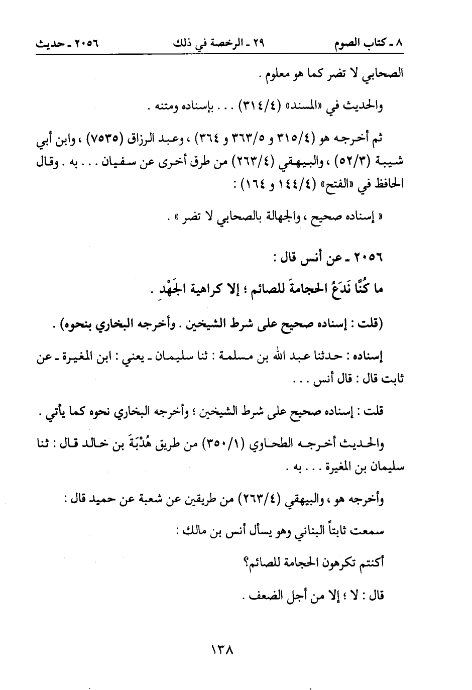 ما كنَّا نَدعُ الحجامةَ للصائم؛ إلا كراهية الجَهْدِ.