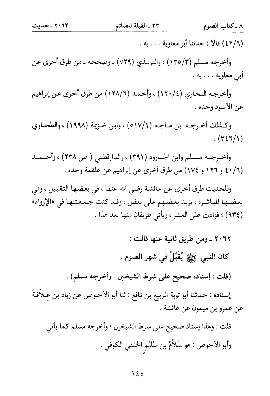 كان النبي صَلَّى اللَّهُ عَلَيْهِ وَسَلَّمَ يُقَبِّل في شهر الصوم.