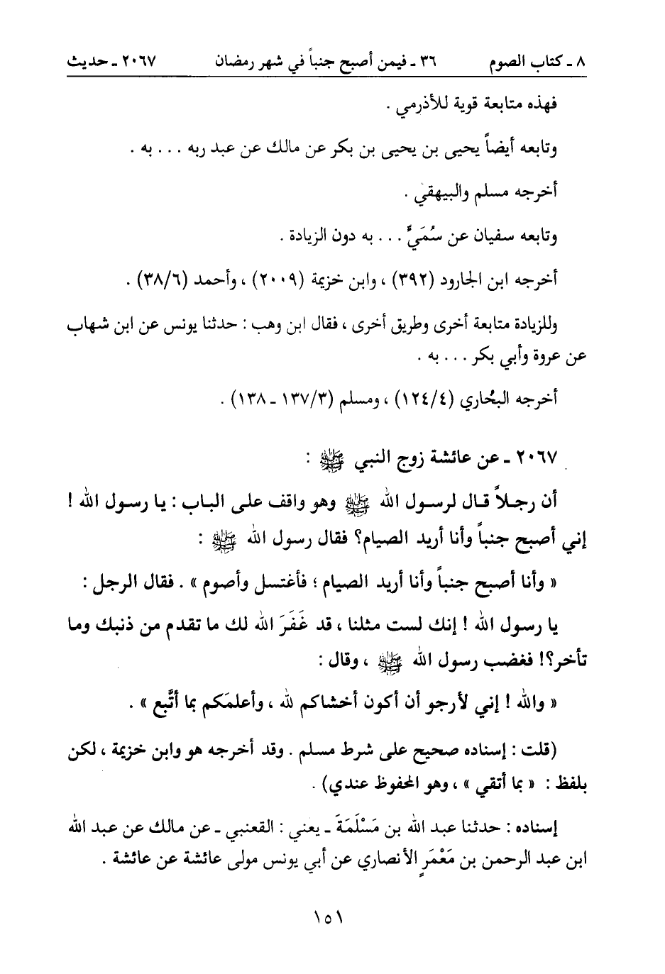 " وأنا أصبح جنباً وأنا أريد الصيام؛ فأغتسل وأصوم ". فقال الرجل: