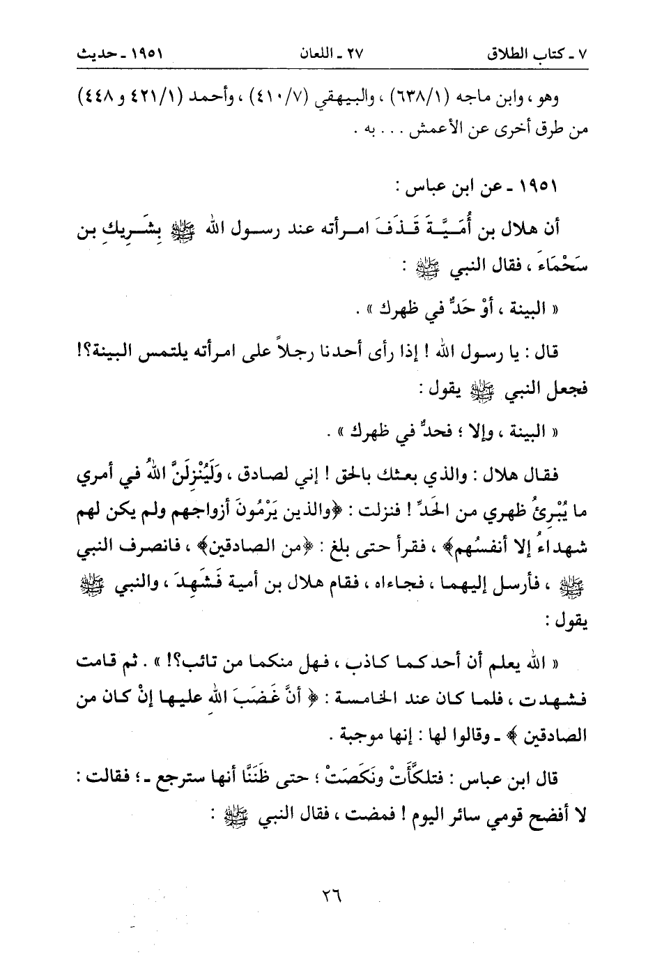 صَلَّى اللَّهُ عَلَيْهِ وَسَلَّمَ، فأرسل إليهما، فجاءاه، فقام هلال بن أمية فَشَهِدَ، والنبي صَلَّى اللَّهُ عَلَيْهِ وَسَلَّمَ