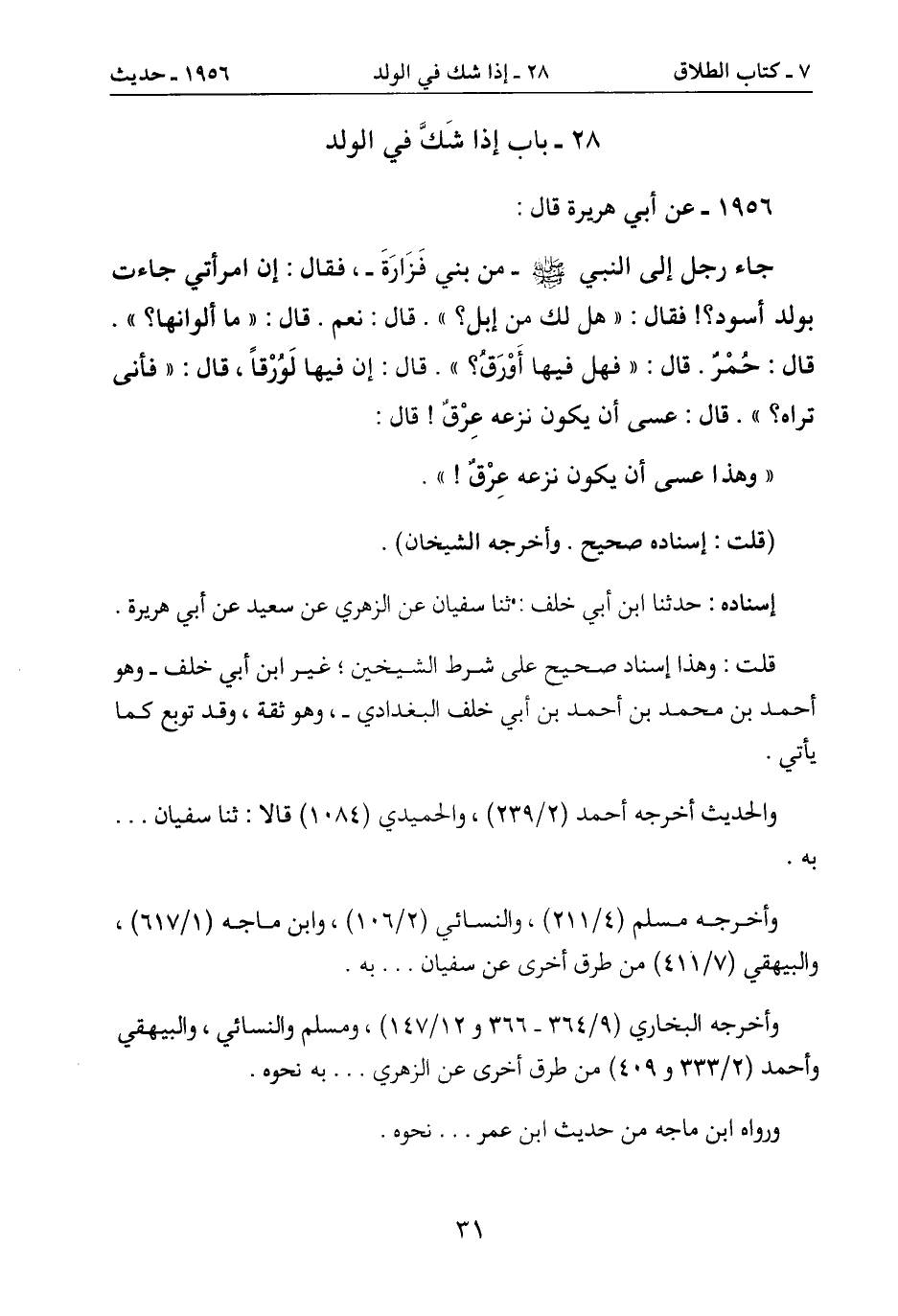 تراه؟ ". قال: عسى أن يكون نزعه عِرْقٌ! قال: