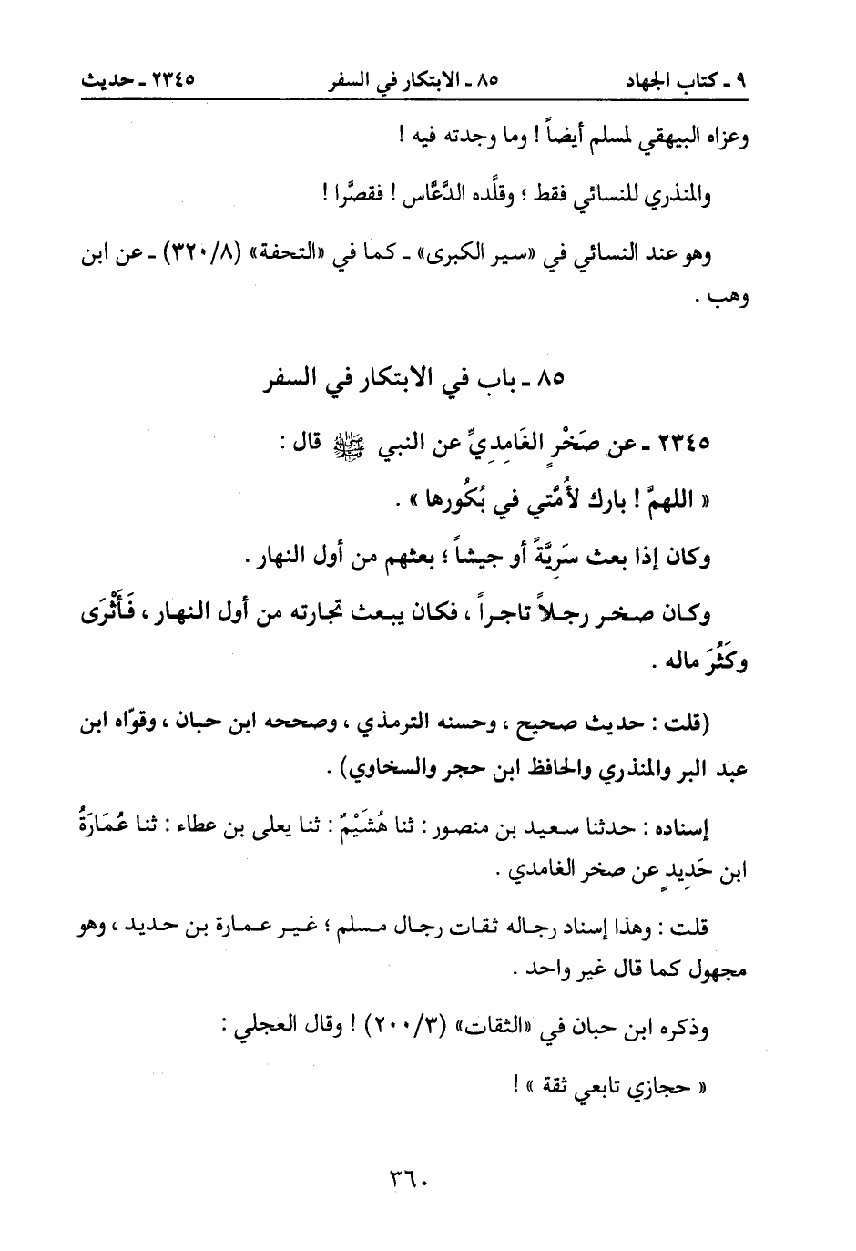 2345- عن صَخْرٍ الغَامِدِيِّ عن النبي صَلَّى اللَّهُ عَلَيْهِ وَسَلَّمَ قال: