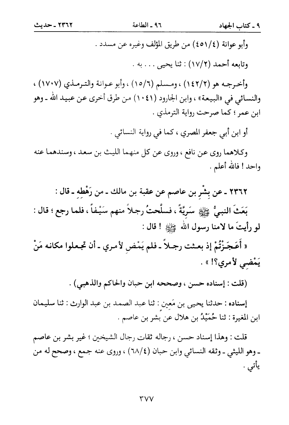 2362- عن بِشْرِ بن عاصم عن عقبة بن مالك- من رَهْطِهِ- قال: