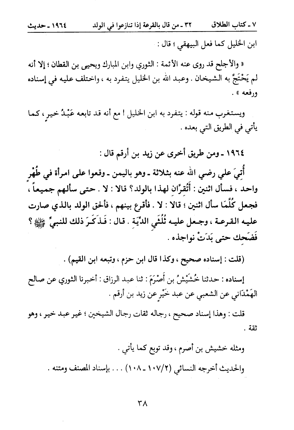 عليه القرعة، وجعل عليه ثُلُثَيِ الدِّيَةِ. قال: فَذَكَرَ ذلك للنبيِّ صَلَّى اللَّهُ عَلَيْهِ وَسَلَّمَ؟