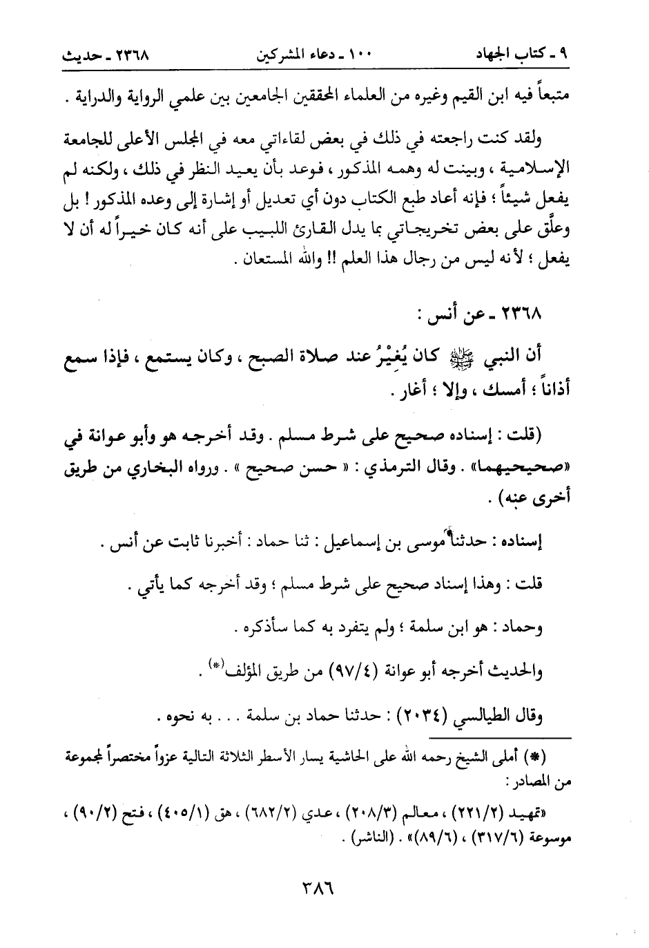 وعلق على بعض تخريجاتي بما يدل القارئ اللبيب على أنه كان خيراً له أن لا