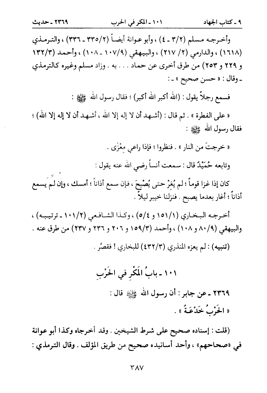 2369- عن جابر: أن رسول الله صَلَّى اللَّهُ عَلَيْهِ وَسَلَّمَ قال: