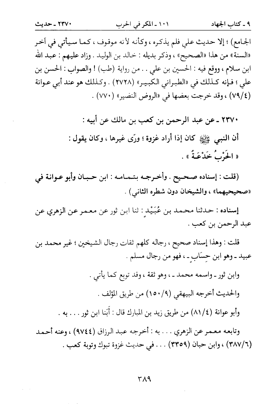 أن النبي صَلَّى اللَّهُ عَلَيْهِ وَسَلَّمَ كان إذا أراد غزوة؛ ورّى غيرها، وكان يقول: