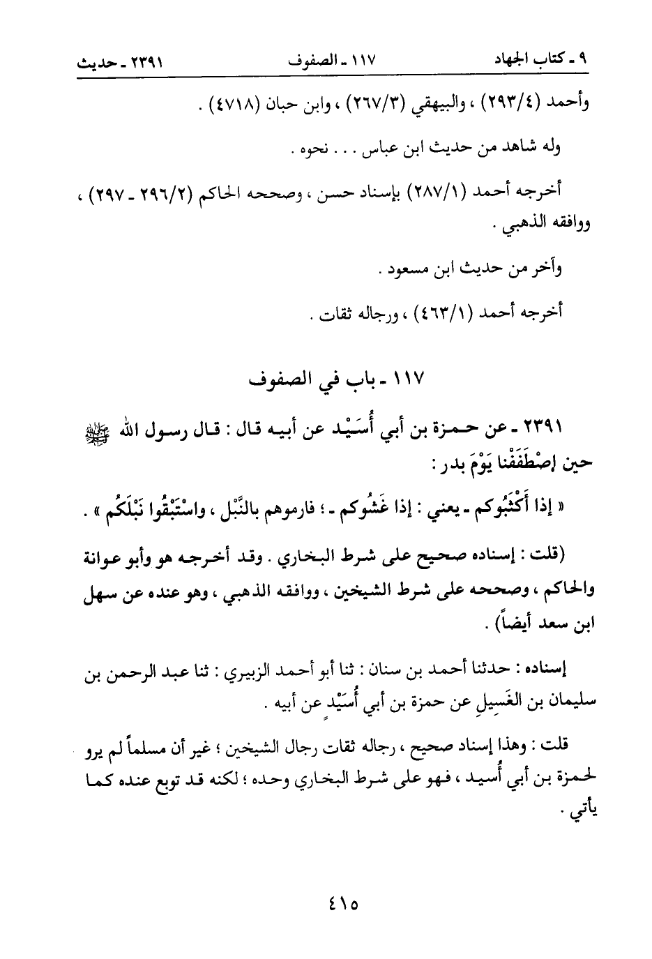 إسناده: حدثنا أحمد بن سنان: ثنا أبو أحمد الزبيري: ثنا عبد الرحمن بن