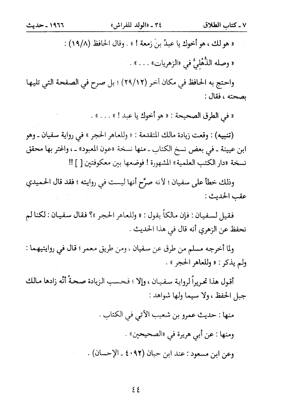 " هو لك، هو أخوك يا عبد بنَ زمعة! ". وقال الحافظ (8/19) :