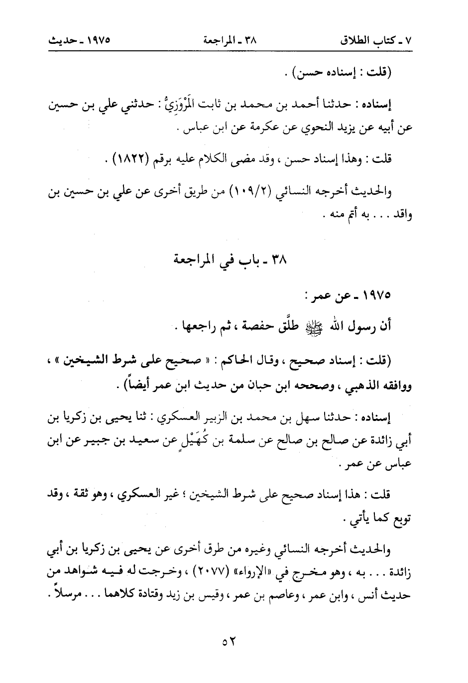 زائدة ... به، وهو مخرج في "الإرواء " (2077) ، وخرجت له فيه شواهد من