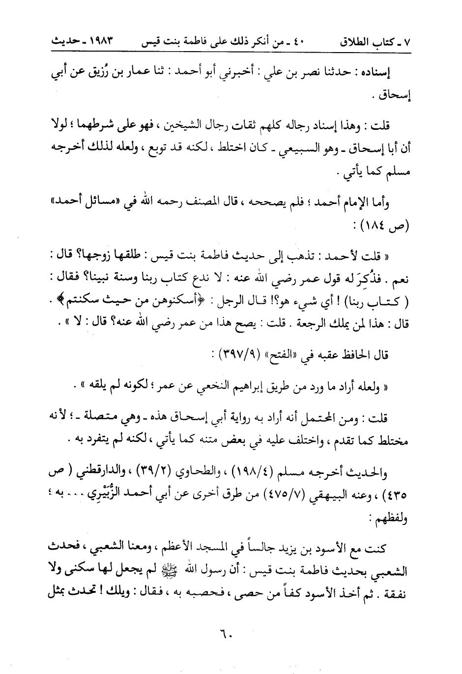 " قلت لأحمد: تذهب إلى حديث فاطمة بنت قيس: طلقها زوجها؟ قال: