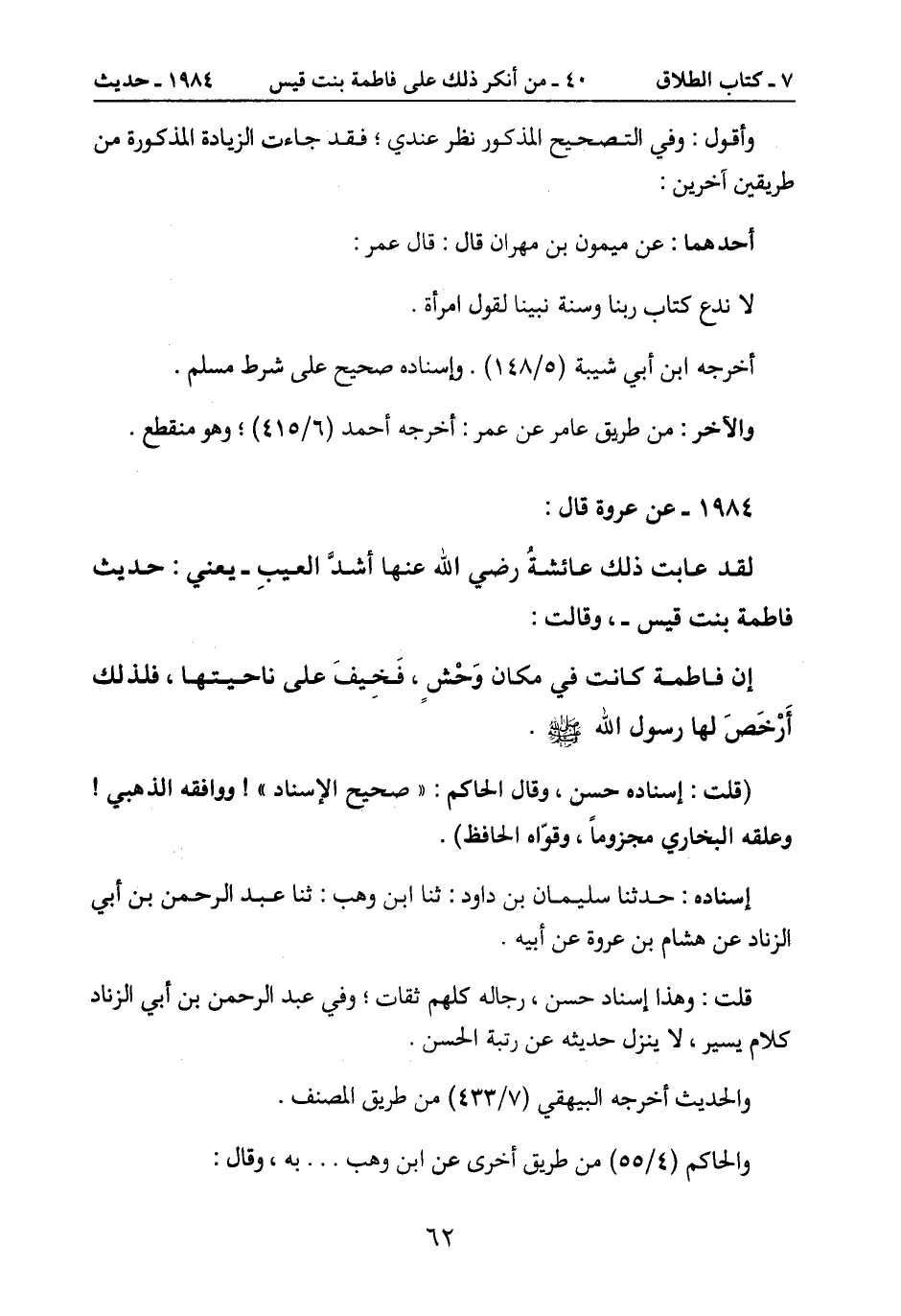لقد عابت ذلك عائشةُ رضي الله عنها أشدَّ العيبِ- يعني: حديث