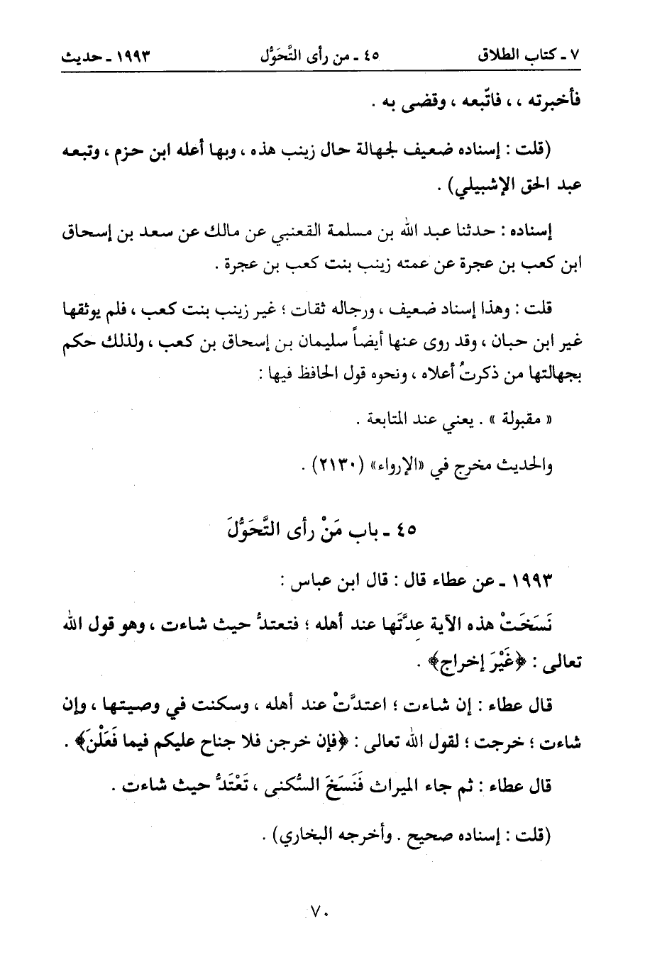 (قلت: إسناده ضعيف لجهالة حال زينب هذه، وبها أعله ابن حزم، وتبعه