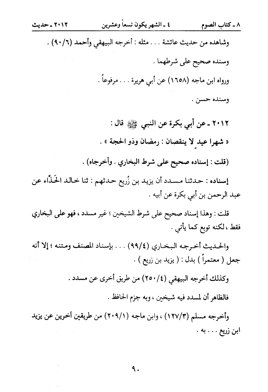 " شهرا عيدٍ لا ينقصان: رمضان وذو الحجة ".