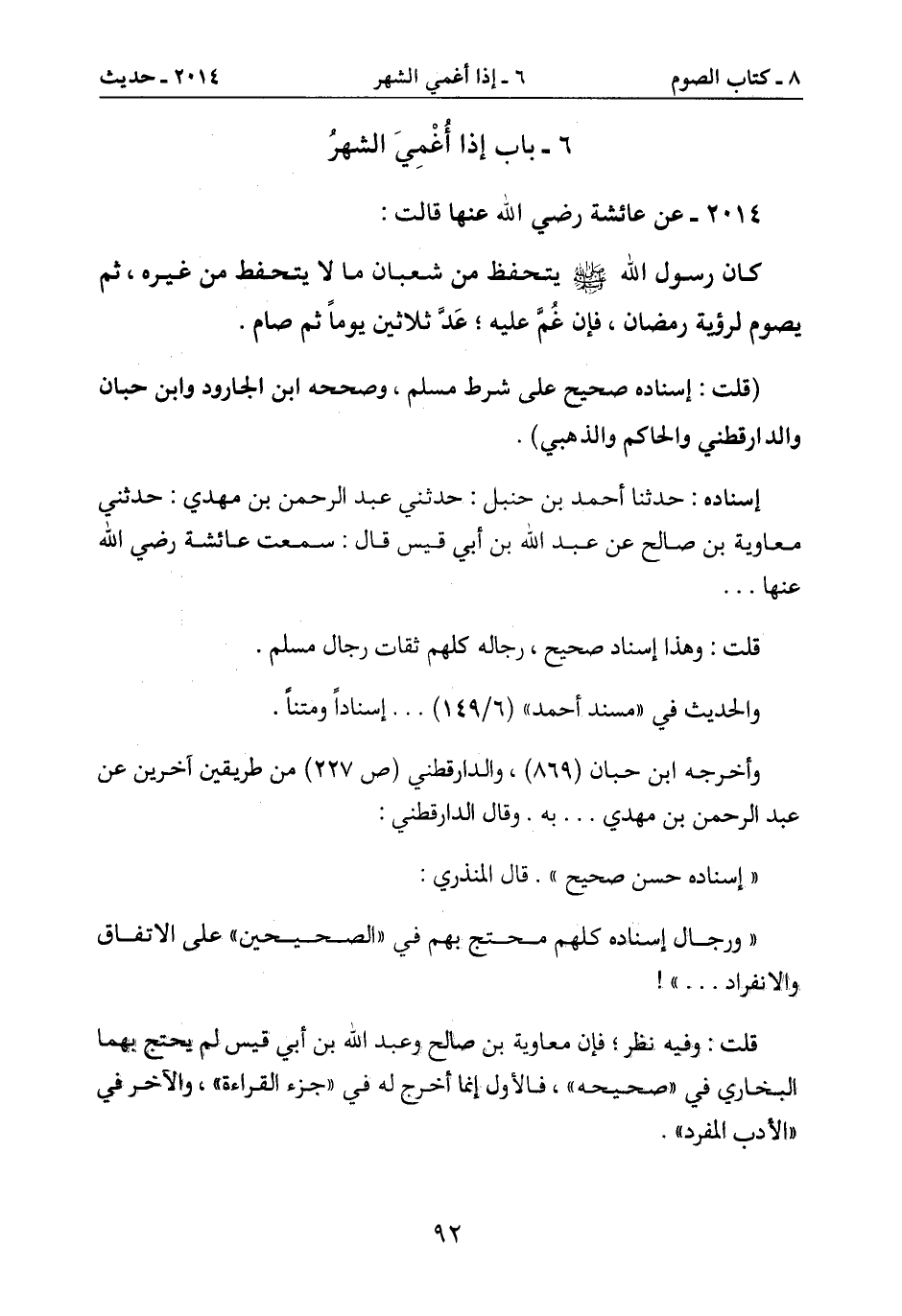 قلت: وفيه نظر؛ فإن معاوية بن صالح وعبد الله بن أبي قيس لم يحتج بهما