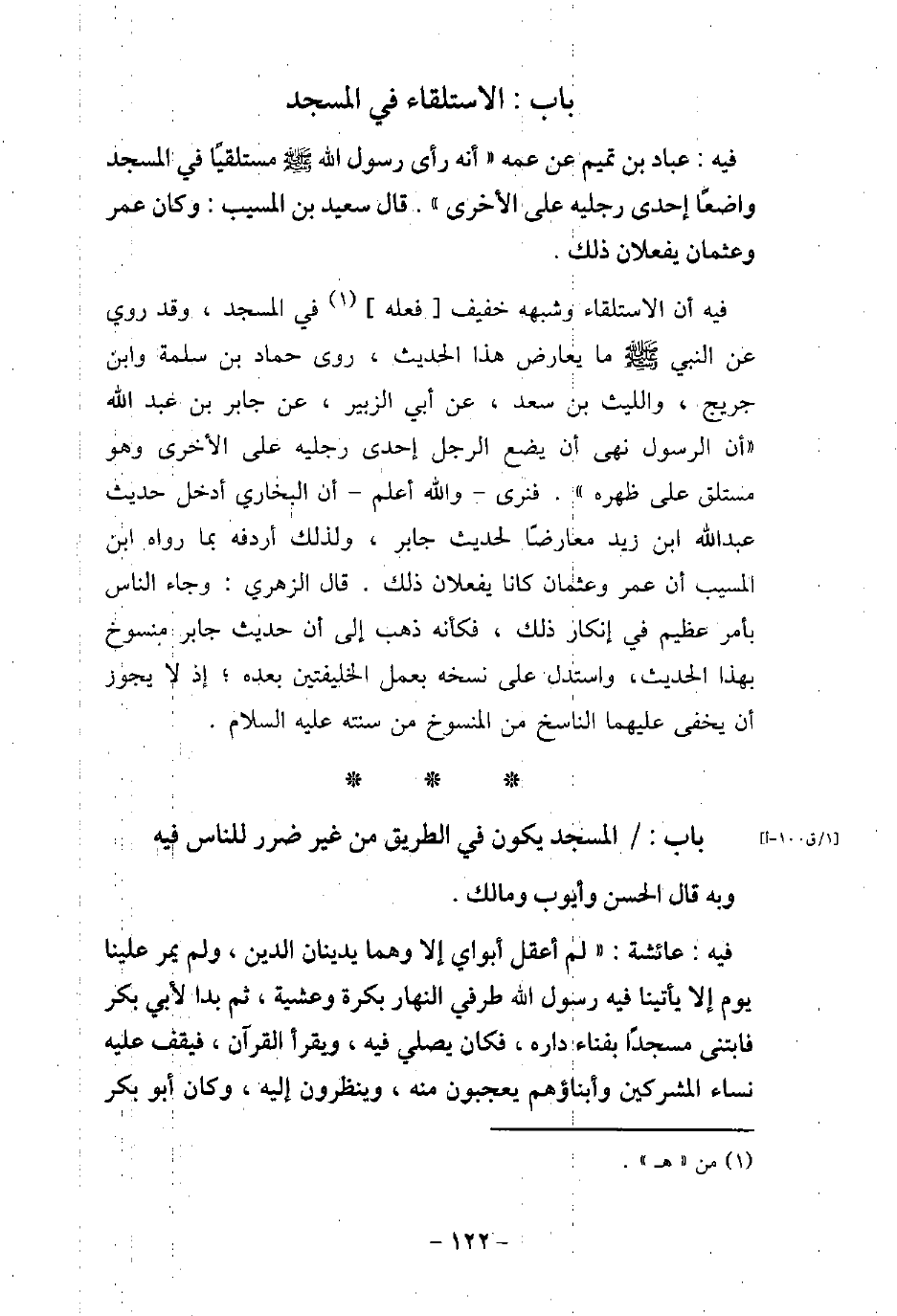 75 - باب الاسْتِلْقَاءِ فِي الْمَسْجِدِ