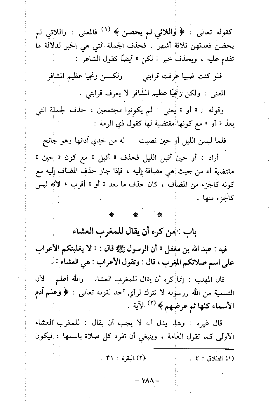 - باب مَنْ كَرِهَ أَنْ يُقَالَ لِلْمَغْرِبِ الْعِشَاءُ