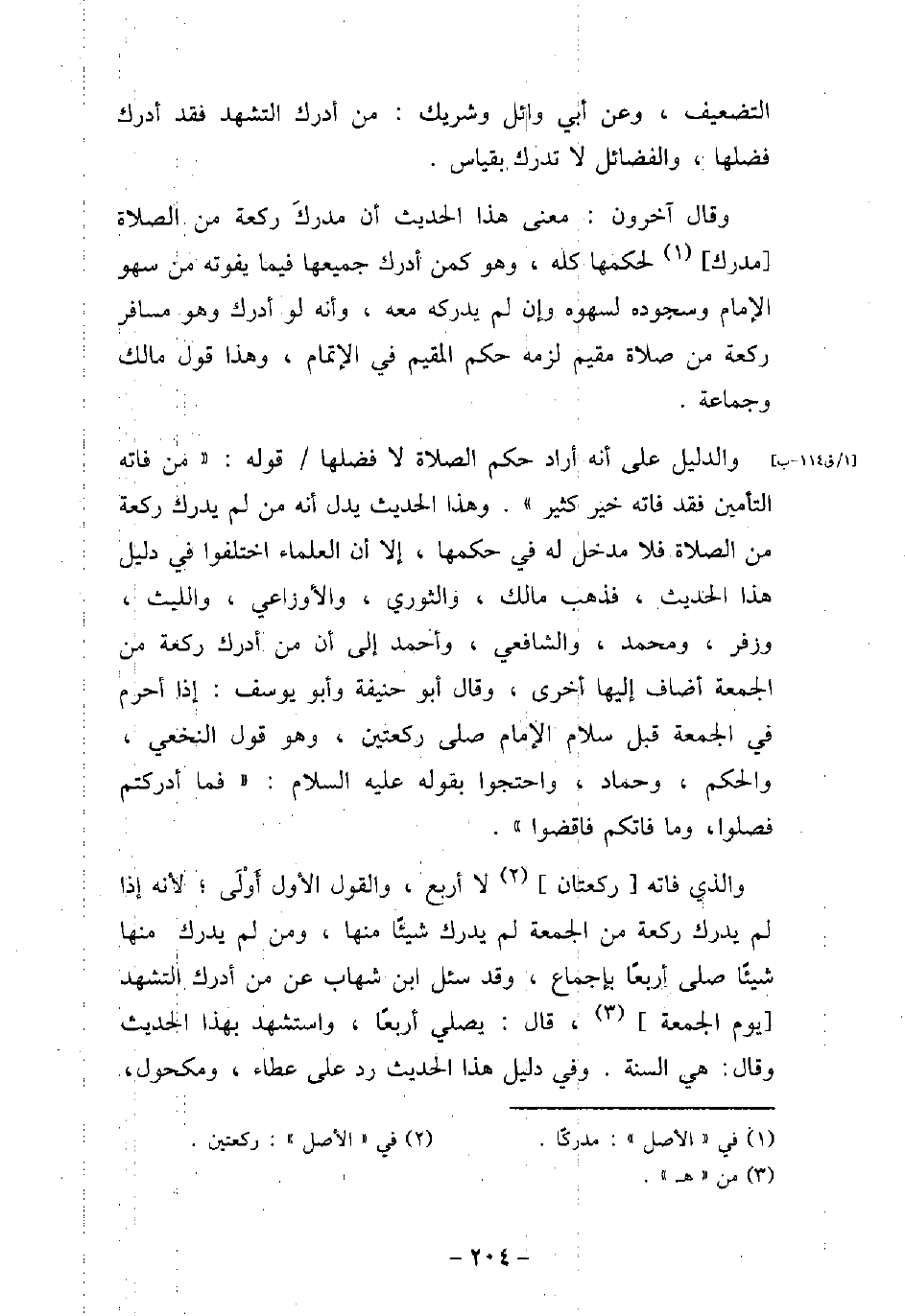 التضعيف، وعن أبى وائل، وشريك: من أدرك التشهد فقد أدرك فضلها، والفضائل لا تدرك بقياس. وقال آخرون: معنى هذا الحديث أن مدرك ركعة من الصلاة مدرك لحكمها كله، وهو كمن أدرك جميعها فيما يفوته من سهو الإمام وسجوده لسهوه وإن لم يدركه معه، وأنه لو أدرك وهو مسافر ركعة من صلاة مقيم لزمه حكم المقيم فى الإتمام، وهذا قول مالك وجماعة. والدليل على أنه أرد حكم الصلاة لا فضلها، قوله: (من فاته التأمين، فقد فاته خير كثير) ، وهذا الحديث يدل أنه من لم يدرك ركعة من الصلاة فلا مدخل له فى حكمها، إلا أن العلماء اختلفوا فى دليل هذا الحديث، فذهب مالك، والثورى، والأوزاعى، والليث، وزفر، ومحمد، والشافعى، وأحمد إلى أن من أدرك ركعة من الجمعة أضاف إليها أخرى، وقال أبو حنيفة، وأبو يوسف: إذا أحرم فى الجمعة قبل سلام الإمام صلى ركعتين، وهو قول النخعى، والحكم، وحماد، واحتجوا بقوله عليه السلام: (فما أدركتم فصلوا، وما فاتكم فاقضوا) . والذى فاته ركعتان لا أربع، والقول الأول أولى؛ لأنه إذا لم يدرك ركعة من الجمعة لم يدرك شيئًا منها، ومن لم يدرك منها شيئًا صلى أربعًا بإجماع، وقد سئل ابن شهاب عن من أدرك التشهد يوم الجمعة، قال: يصلى أربعًا، واستهد بهذا الحديث، وقال: هى السنة، وفى دليل هذا الحديث رد على عطاء، ومكحول،