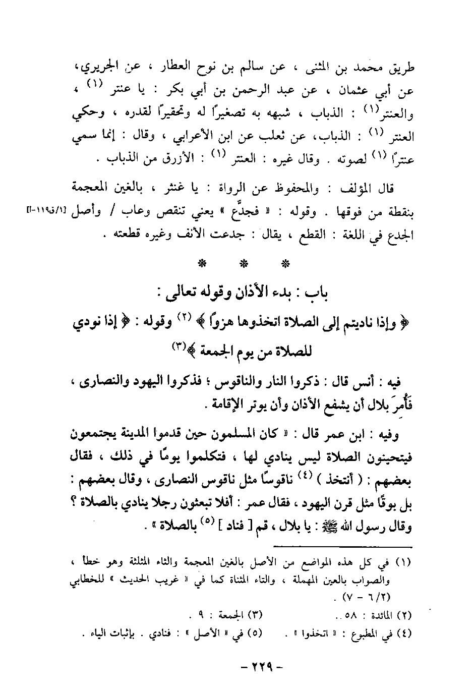 - باب بَدْءُ الأذَانِ وَقَوْلُهُ تَعَالَى: (وَإِذَا نَادَيْتُمْ إِلَى الصَّلاةِ اتَّخَذُوهَا) [المائدة 58] . وَقَوْلُهُ: (إِذَا نُودِيَ لِلصَّلاةِ مِنْ يَوْمِ الْجُمُعَةِ) [الجمعة 9] .