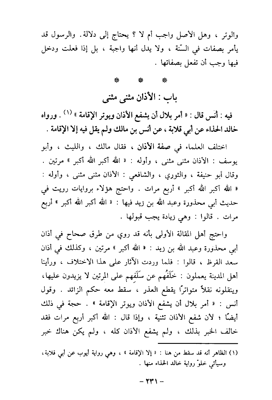 - باب الأذَانُ مَثْنَى مَثْنَى