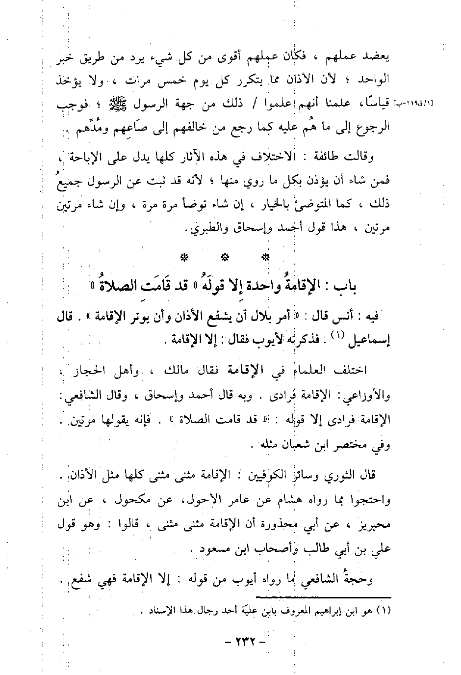 3 - باب الإقَامَةُ وَاحِدَةٌ إِلا قَوْلَهُ (قَدْ قَامَتِ الصَّلاةُ