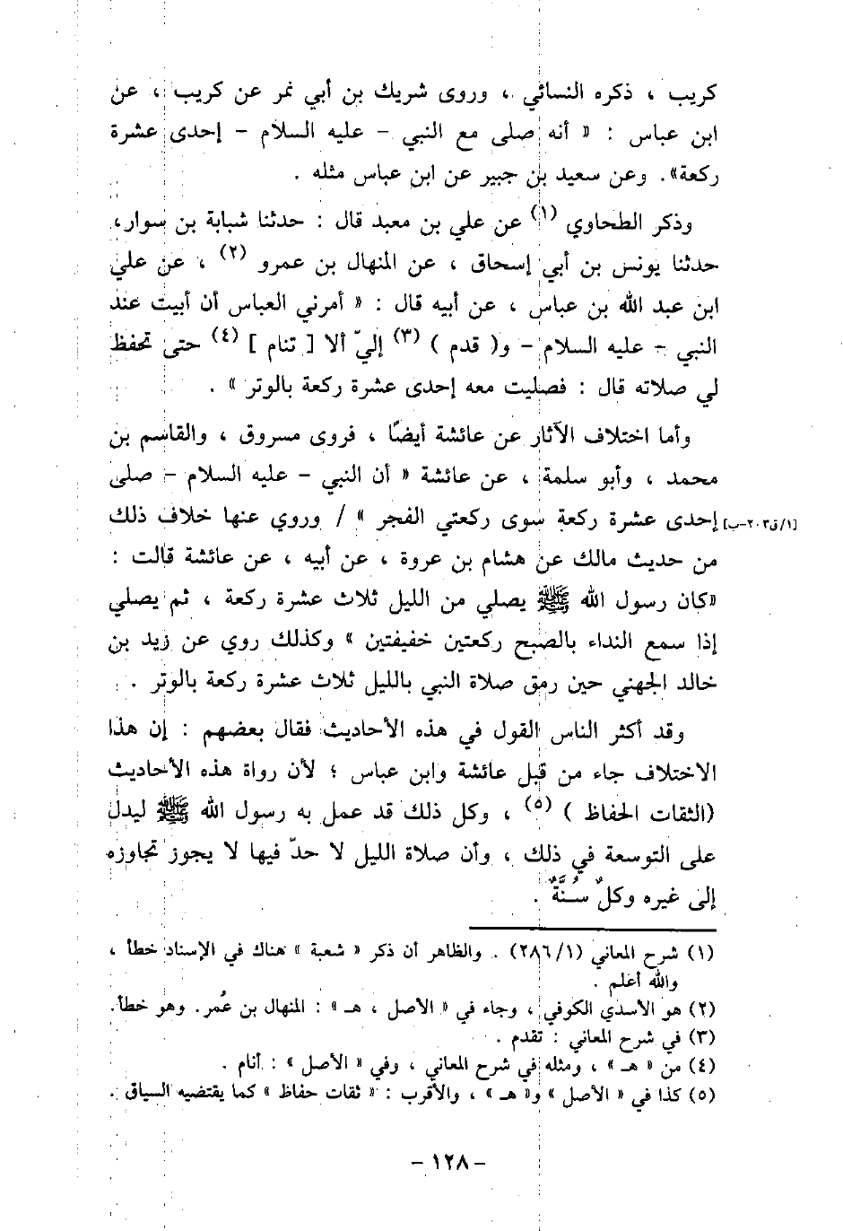 كريب، ذكره النسائى، وروى شريك ابن أبى نمر، عن كريب، عن ابن عباس، أنه صلى مع النبى، (صلى الله عليه وسلم) ، إحدى عشرة ركعة. وعن سعيد بن جبير، عن ابن عباس مثله. وذكر الطحاوى، عن على بن معبد، قال: حدثنا شبابة بن سوار، حدثنا يونس بن أبى إسحاق، عن المنهال بن عمر، عن على بن عبد الله بن عباس، عن أبيه، قال: أمرنى العباس أن أبيت عند النبى، (صلى الله عليه وسلم) ، وقدم إلىّ ألا تنام حتى تحفظ لى صلاته، قال: فصليت معه إحدى عشرة ركعة بالوتر. وأما اختلاف الآثار، عن عائشة أيضًا، فروى مسروق، والقاسم بن محمد، وأبو سلمة، عن عائشة: أن النبى، (صلى الله عليه وسلم) ، صلى إحدى عشرة ركعة سوى ركعتى الفجر. وروى عنها خلاف ذلك من حديث مالك، عن هشام بن عروة، عن أبيه، عن عائشة، قالت: كان رسول الله (صلى الله عليه وسلم) يصلى من الليل ثلاث عشرة ركعة، ثم يصلى إذا سمع النداء بالصبح ركعتين خفيفتين. وكذلك روى عن زيد بن خالد الجهنى حين رمق صلاة النبى بالليل ثلاث عشرة ركعة بالوتر. وقد أكثر الناس القول فى هذه الأحاديث، فقال بعضهم: إن هذا الاختلاف جاء من قبل عائشة، وابن عباس، لأن رواة هذه الأحاديث الثقات الحفاظ، وكل ذلك قد عمل به رسول الله (صلى الله عليه وسلم) ليدل على التوسعة فى ذلك، وأن صلاة الليل لا حدّ فيها لا يجوز تجاوزه إلى غيره وكلٌ سُنَّةٌ.