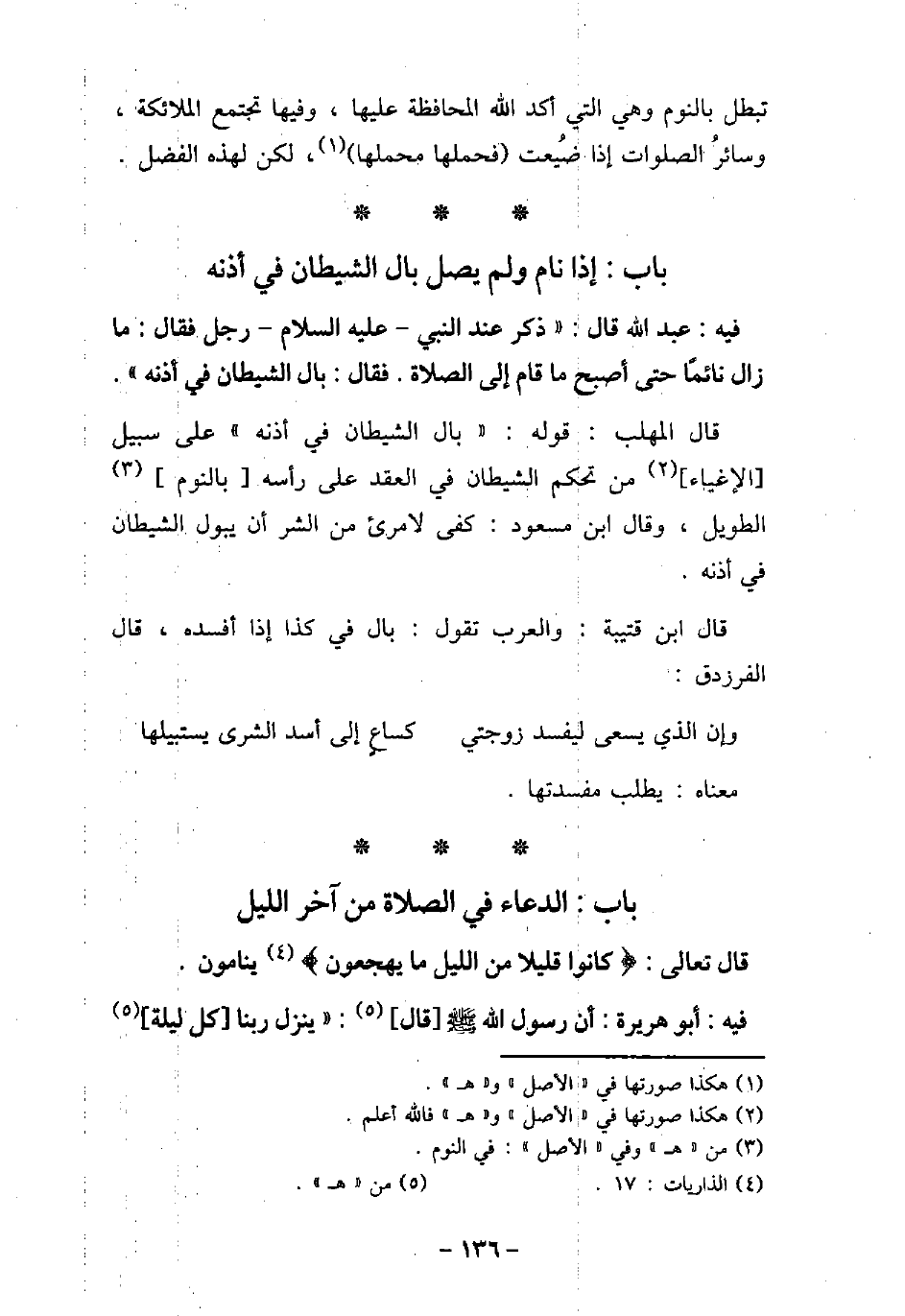 78 - باب إِذَا نَامَ وَلَمْ يُصَلِّ بَالَ الشَّيْطَانُ فِى أُذُنِهِ