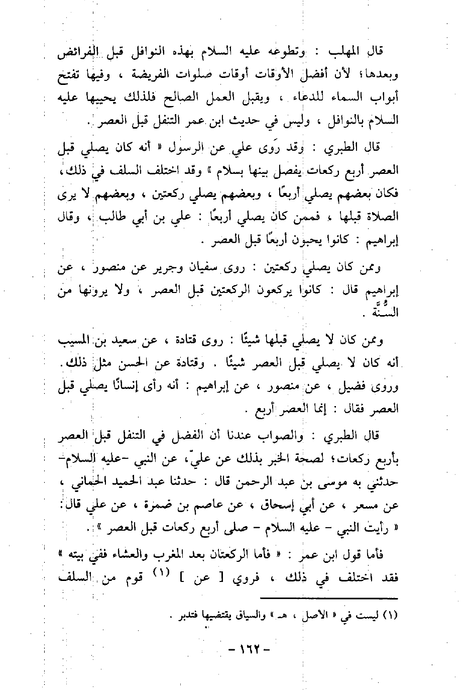 قال المهلب: وتطوعه (صلى الله عليه وسلم) بهذه النوافل قبل الفرائض وبعدها، لأن أفضل الأوقات أوقات صلوات الفريضة، وفيها تفتح أبواب السماء للدعاء، ويقبل العمل الصالح فلذلك يحييها (صلى الله عليه وسلم) بالنوافل، وليس فى حديث ابن عمر التنفل قبل العصر. قال الطبرى: وقد روى على عن الرسول: أنه كان يصلى قبل العصر أربع ركعات يفصل بينها بسلام، وقد اختلف السلف فى ذلك فكان بعضهم يصلى أربعًا، وبعضهم يصلى ركعتين، وبعضهم لا يرى الصلاة قبلها، فممن كان يصلى أربعًا: على بن أبى طالب، وقال إبراهيم: كانوا يحبون أربعًا قبل العصر. وممن كان يصلى ركعتين: روى سفيان وجرير، عن منصور، عن إبراهيم: قال كانوا يركعون الركعتين قبل العصر، ولا يرونها من السُّنَّة. وممن كان لا يصلى قبلها شيئًا، روى قتادة عن سعيد بن المسيب أنه كان لا يصلى قبل العصر شيئًا. وقتادة عن الحسن مثل ذلك وروى فضيل، عن منصور، عن إبراهيم، أنه رأى إنسانًا يصلى قبل العصر فقال: إنما العصر أربع. قال الطبرى: والصواب عندنا أن الفضل فى التنفل قبل العصر بأربع ركعات، لصحة الخبر بذلك عن على، عن النبى، (صلى الله عليه وسلم) ، حدثنى به موسى بن عبد الرحمن، قال: حدثنا عبد الحميد الحمانى، عن مسعر، عن إبى إسحاق، عن عاصم بن ضمرة، عن على، قال: رأيت النبى، (صلى الله عليه وسلم) ، صلى أربع ركعات قبل العصر. فأما قول ابن عمر: فأما الركعتان بعد المغرب والعشاء ففى بيته، فقد اختلف فى ذلك، فروى عن قوم من السلف