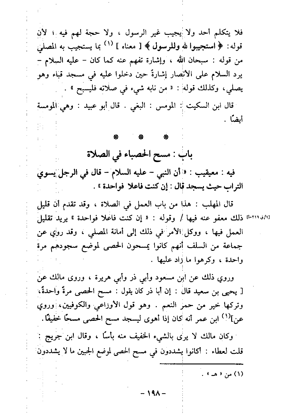 2 - باب مَسْحِ الْحَصَا فِى الصَّلاةِ