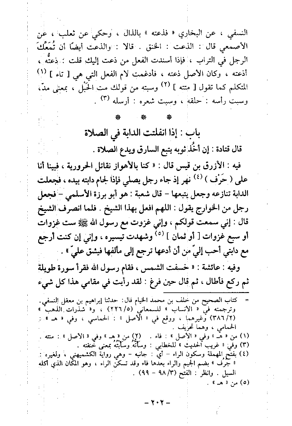 5 - باب إِذَا انْفَلَتَتِ الدَّابَّةُ فِى الصَّلاةِ