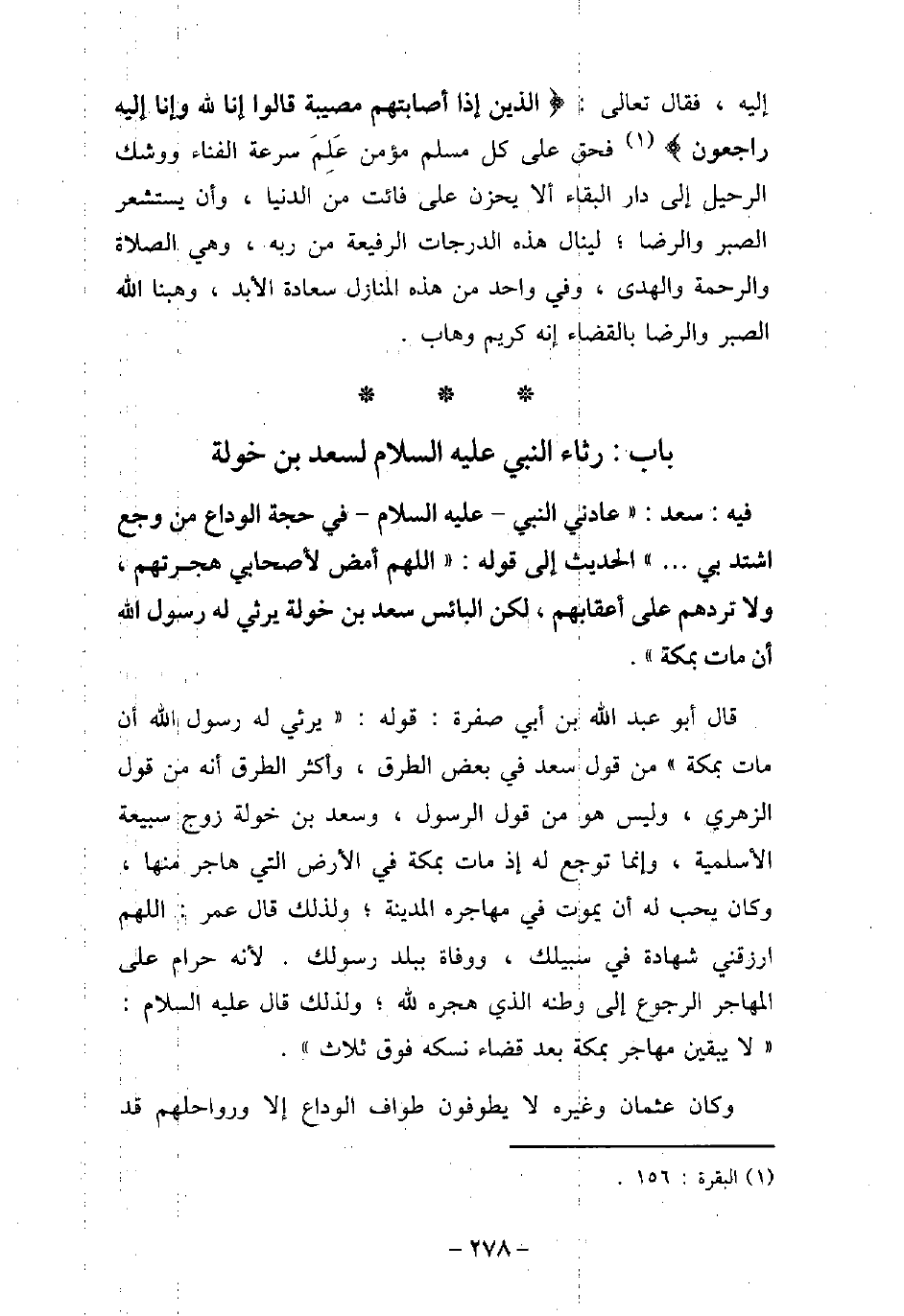 - بَاب رِثَاءِ النَّبِىِّ (صلى الله عليه وسلم) لسعْدَ بْنَ خَوْلَةَ