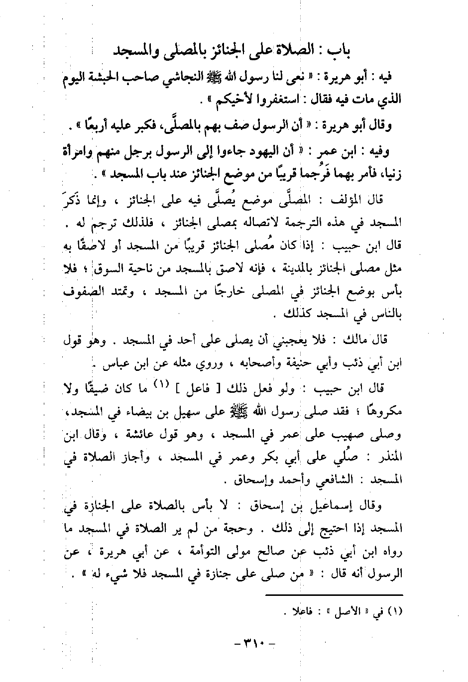 / 65 - فيه: أَبُو هُرَيْرَةَ، نَعَى لَنَا رَسُولُ اللَّهِ (صلى الله عليه وسلم) النَّجَاشِىَّ صَاحِبَ الْحَبَشَةِ، اليَوْمَ الَّذِى مَاتَ فِيهِ، فَقَالَ: (اسْتَغْفِرُوا لأخِيكُمْ) . وقَالَ أَبُو هُرَيْرَةَ: أن الرسول (صلى الله عليه وسلم) صَفَّ بِهِمْ بِالْمُصَلَّى، فَكَبَّرَ عَلَيْهِ أَرْبَعًا. / 66 - وفيه: ابْن عُمَرَ، أَنَّ الْيَهُودَ جَاءُوا إِلَى الرسول (صلى الله عليه وسلم) بِرَجُلٍ مِنْهُمْ وَامْرَأَةٍ زَنَيَا، فَأَمَرَ بِهِمَا فَرُجِمَا قَرِيبًا مِنْ مَوْضِعِ الْجَنَائِزِ عِنْدَ الْمَسْجِدِ. قال المؤلف: المصلى موضع يُصلَّى فيه على الجنائز، وإنما ذكر المسجد فى هذه الترجمة لاتصاله بمصلى الجنائز، فلذلك ترجم له. قال ابن حبيب: إذا كان مُصلى الجنائز قريبًا من المسجد أو لاصقًا به مثل مصلى الجنائز بالمدينة، فإنه لاصق بالمسجد من ناحية السوق، فلا بأس بوضع الجنائز فى المصلى خارجًا من المسجد، وتمتد الصفوف بالناس فى المسجد كذلك. قال مالك: فلا يعجبنى أن يصلى على أحد فى المسجد. وهو قول ابن أبى ذئب، وأبى حنيفة، وأصحابه، وروى مثله عن ابن عباس. قال ابن حبيب: ولو فعل ذلك فاعل ما كان ضيقًا، ولا مكروهًا، فقد صلى رسول الله (صلى الله عليه وسلم) على سهيل بن بيضاء فى المسجد، وصلى صهيب على عمر فى المسجد، وهو قول عائشة، وقال ابن المنذر: صُلى على أبى بكر، وعمر فى المسجد، وأجاز الصلاة فى المسجد: الشافعى، وأحمد، وإسحاق. وقال إسماعيل بن إسحاق: لا بأس بالصلاة على الجنازة فى المسجد إذا احتيج إلى ذلك. وحجة من لم ير الصلاة فى المسجد ما رواه ابن أبى ذئب عن صالح مولى التوأمة، عن أبى هريرة، عن الرسول أنه قال: (من صلى على جنازة فى المسجد فلا شىء له) .