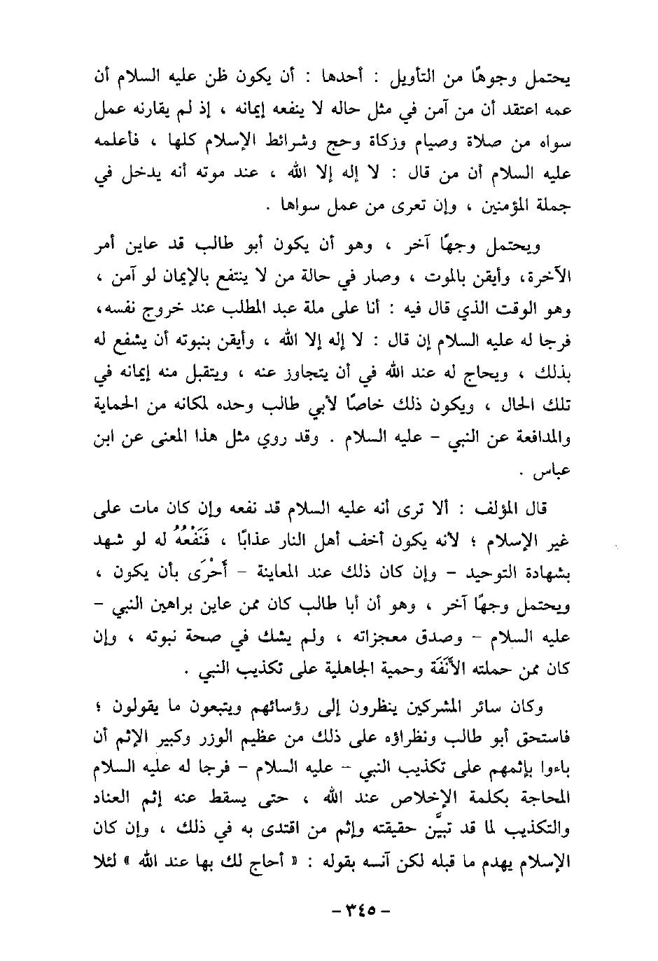 يحتمل وجوهًا فى التأويل: أحدها: أن يكون ظن (صلى الله عليه وسلم) أن عمه اعتقد أن من آمن فى مثل حاله لا ينفعه إيمانه، إذ لم يقارنه عمل سواه من صلاة وصيام وزكاة وحج وشرائط الإسلام كلها، فأعلمه (صلى الله عليه وسلم) أن من قال: لا إله إلا الله، عند موته أنه يدخل فى جملة المؤمنين، وإن تعرى من عمل سواها. ويحتمل وجهًا آخر، وهو أن يكون أبو طالب قد عاين أمر الآخرة، وأيقن بالموت، وصار فى حالة من لا ينتفع بالإيمان لو آمن، وهو الوقت الذى قال فيه: أنا على ملة عبد المطلب عند خروج نفسه، فرجا له (صلى الله عليه وسلم) إن قال: لا إله إلا الله، وأيقن بنبوته أن يشفع له بذلك، ويحاج له عند الله فى أن يتجاوز عنه، ويتقبل منه إيمانه فى تلك الحال، ويكون ذلك خاصًا لأبى طالب وحده لمكانه من الحماية والمدافعة عن النبى، (صلى الله عليه وسلم) ، وقد روى مثل هذا المعنى عن ابن عباس. قال المؤلف: ألا ترى أنه (صلى الله عليه وسلم) قد نفعه وإن كان مات على غير الإسلام، لأنه يكون أخف أهل النار عذابًا، فنفعه له لو شهد بشهادة التوحيد، وإن كان ذلك عند المعاينة، أحرى بأن يكون، ويحتمل وجهًا آخر، وهو أن أبا طالب كان ممن عاين براهين النبى، (صلى الله عليه وسلم) ، وصدق معجزاته، ولم يشك فى صحة نبوته، وإن كان ممن حملته الأنفة وحمية الجاهلية على تكذيب النبى. وكان سائر المشركين ينظرون إلى رؤسائهم ويتبعون ما يقولون، فاستحق أبو طالب ونظراؤه على ذلك من عظيم الوزر وكبير الإثم أن باءوا بإثمهم على تكذيب النبى، (صلى الله عليه وسلم) ، فرجا له (صلى الله عليه وسلم) المحاجة بكلمة الإخلاص عند الله، حتى يسقط عنه إثم العناد والتكذيب لما قد تبين حقيقته وإثم من اقتدى به فى ذلك، وإن كان الإسلام يهدم ما قبله لكن آنسه بقوله: (أحاج لك بها عند الله) لئلا