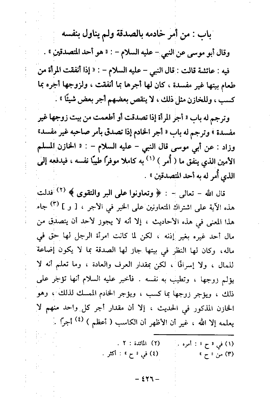 - باب مَنْ أَمَرَ خَادِمَهُ بِالصَّدَقَةِ وَلَمْ يُنَاوِلْ بِنَفْسِهِ