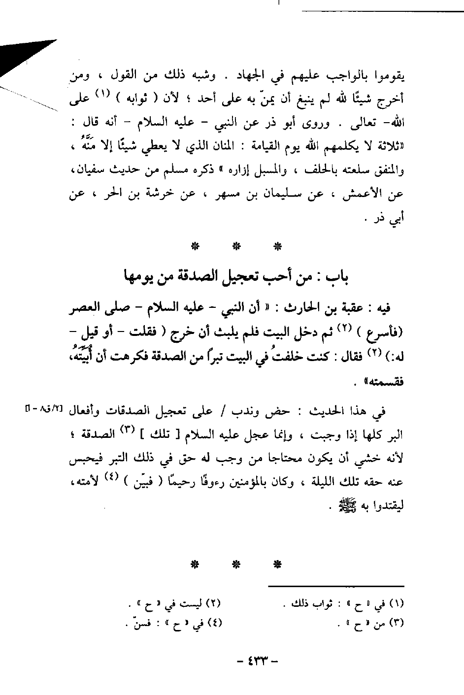 - باب مَنْ أَحَبَّ تَعْجِيلَ الصَّدَقَةِ مِنْ يَوْمِهَا