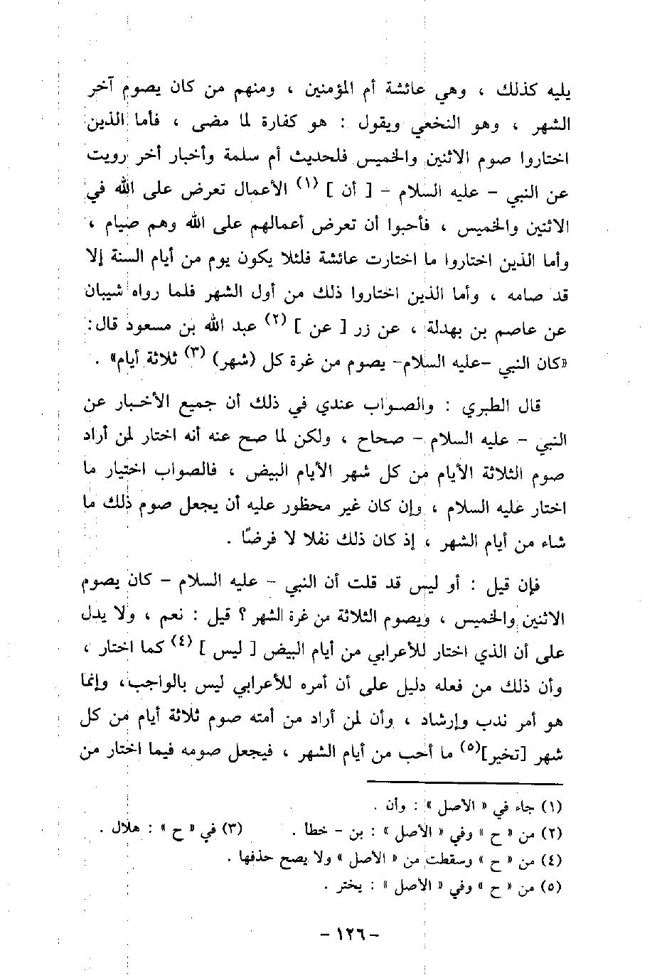 يليه كذلك، وهى عائشة أم المؤمنين، ومنهم من كان يصوم آخر الشهر، وهو النخعى ويقول: هو كفارة لما مضى، فأما الذين اختاروا صوم الاثنين والخميس فلحديث أم سلمة وأخبار أخر رويت عن النبى، عليه السلام، أن الأعمال تعرض على الله فى الاثنين والخميس، فأحبوا أن تعرض أعمالهم على الله وهم صيام، وأما الذين اختاروا ما اختارت عائشة فلئلا يكون يوم من أيام السنة إلا قد صامه، وأما الذين اختاروا ذلك من أول الشهر فلما رواه شيبان عن عاصم بن بهدلة، عن زر عن عبد الله بن مسعود، قال: (كان النبى، عليه السلام، يصوم من غرة كل شهر ثلاثة أيام) . قال الطبرى: والصواب عندى فى ذلك أن جميع الأخبار عن النبى، عليه السلام، صحاح، ولكن لما صح عنه أنه اختار لمن أراد صوم الثلاثة الأيام من كل شهر الأيام البيض، فالصواب اختيار ما اختار عليه السلام، وإن كان غير محظور عليه أن يجعل صوم ذلك ما شاء من أيام الشهر، إذ كان ذلك نفلا لا فرضًا. فإن قيل: أو ليس قد قلت أن النبى، عليه السلام، كان يصوم الاثنين والخميس، ويصوم الثلاثة من غرة الشهر؟ . قيل: نعم، ولا يدل على أن الذى اختار للأعرابى من أيام البيض ليس كما اختار وأن ذلك من فعله دليل على أن أمره للأعرابى ليس بالواجب، وإنما هو أمر ندب وإرشاد، وأن لمن أراد من أمته صوم ثلاثة أيام من كل شهر تخير ما أحب من أيام الشهر، فيجعل صومه فيما اختار من