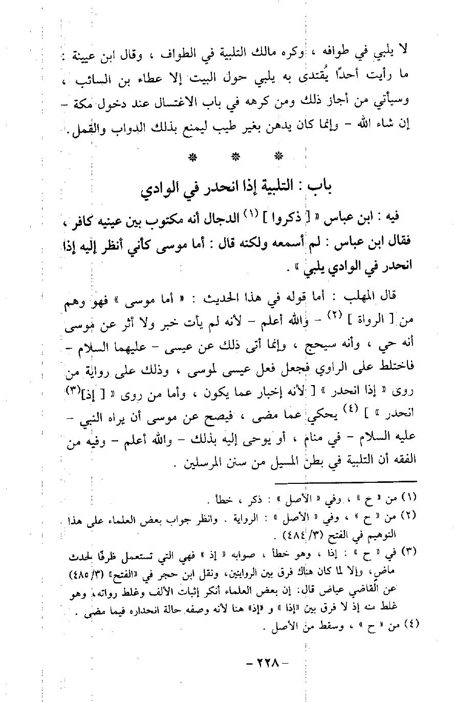 - باب التَّلْبِيَةِ إِذَا انْحَدَرَ فِى الْوَادِى