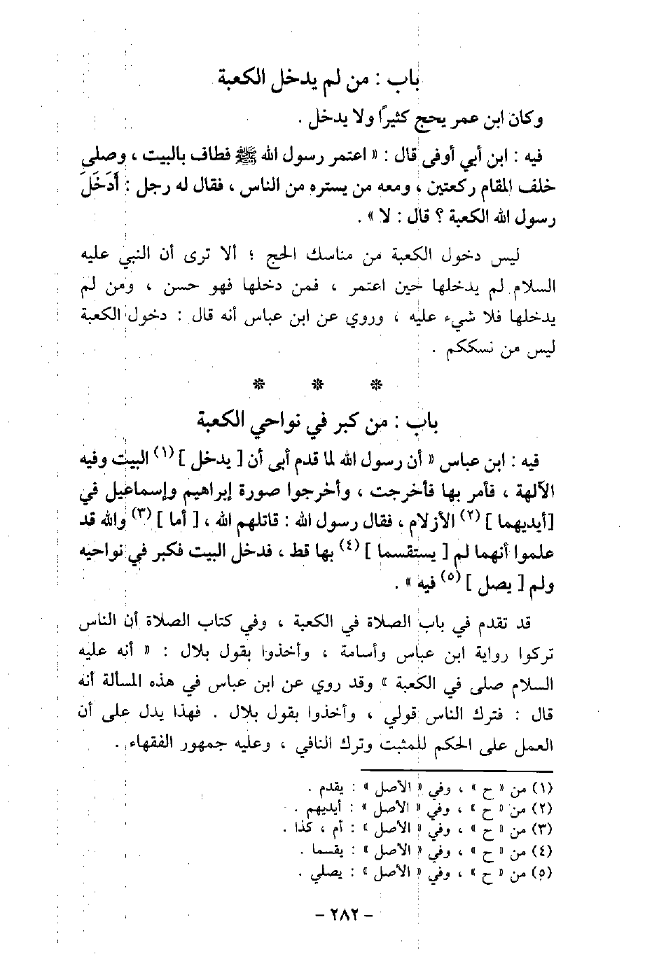 وَكَانَ ابْنُ عُمَرَ يَحُجُّ كَثِيرًا وَلا يَدْخُلُ. / 71 - فيه: ابْن أَبِى أَوْفَى، قَالَ: اعْتَمَرَ رَسُولُ اللَّهِ (صلى الله عليه وسلم) فَطَافَ بِالْبَيْتِ، وَصَلَّى خَلْفَ الْمَقَامِ رَكْعَتَيْنِ، وَمَعَهُ مَنْ يَسْتُرُهُ مِنَ النَّاسِ، فَقَالَ لَهُ رَجُلٌ: أَدَخَلَ رَسُولُ اللَّهِ (صلى الله عليه وسلم) الْكَعْبَةَ؟ قَالَ: لا. ليس دخول الكعبة من مناسك الحج؛ ألا ترى أن النبى عليه السلام لم يدخلها حين اعتمر، فمن دخلها فهو حسن، ومن لم يدخلها فلا شىء عليه، وروى عن ابن عباس أنه قال: دخول الكعبة ليس من نسككم.