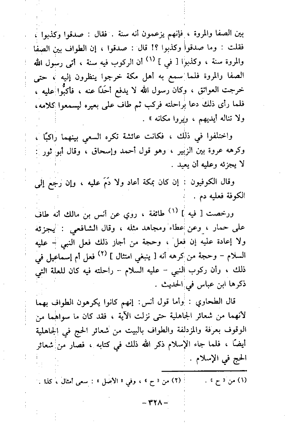 بين الصفا والمروة، فإنهم يزعمون أنه سنة. فقال: صدقوا وكذبوا، فقلت: وما صدقوا وكذبوا؟ قال: صدقوا، إن الطواف بين الصفا والمروة سنة، وكذبوا فى أن الركوب فيه سنة، أتى رسول الله (صلى الله عليه وسلم) الصفا والمروة فلما سمع به أهل مكة خرجوا ينظرون إليه، حتى خرجت العواتق، وكان رسول الله (صلى الله عليه وسلم) لا يدفع أحَدًا عنه، فأكبُّوا عليه، فلما رأى ذلك دعا براحلته فركب ثم طاف على بعيره ليسمعوا كلامه، ولا تناله أيديهم، ويروا مكانه) . واختلفوا فى ذلك، فكانت عائشة تكره السعى بينهما راكبًا، وكرهه عروة بين الزبير، وهو قول أحمد وإسحاق، وقال أبو ثور: لا يجزئه وعليه أن يعيد. وقال الكوفيون: إن كان بمكة أعاد ولا دَمَ عليه، وإن رجع إلى الكوفة فعليه دم. ورخصت فيه طائفة، روى عن أنس بن مالك أنه طاف على حمار، وعن عطاء ومجاهد مثله. وقال الشافعى: يجزئه ولا إعادة عليه إن فعل، وحجة من أجاز ذلك فعل النبى عليه السلام وحجة من كرهه أنه ينبغى امتثال فعل أم إسماعيل فى ذلك، وأن ركوب النبى عليه السلام راحلته فيه كان للعلة التى ذكرها ابن عباس فى الحديث. قال الطحاوى: وأما قول أنس: إنهم كانوا يكرهون الطواف بهما لأنهما من شعائر الجاهلية حتى نزلت الآية، فقد كان ما سواهما من الوقوف بعرفة والمزدلفة والطواف بالبيت من شعائر الحج فى الجاهلية أيضًا، فلما جاء الإسلام ذكر الله ذلك فى كتابه، فصار من شعائر الحج فى الإسلام.