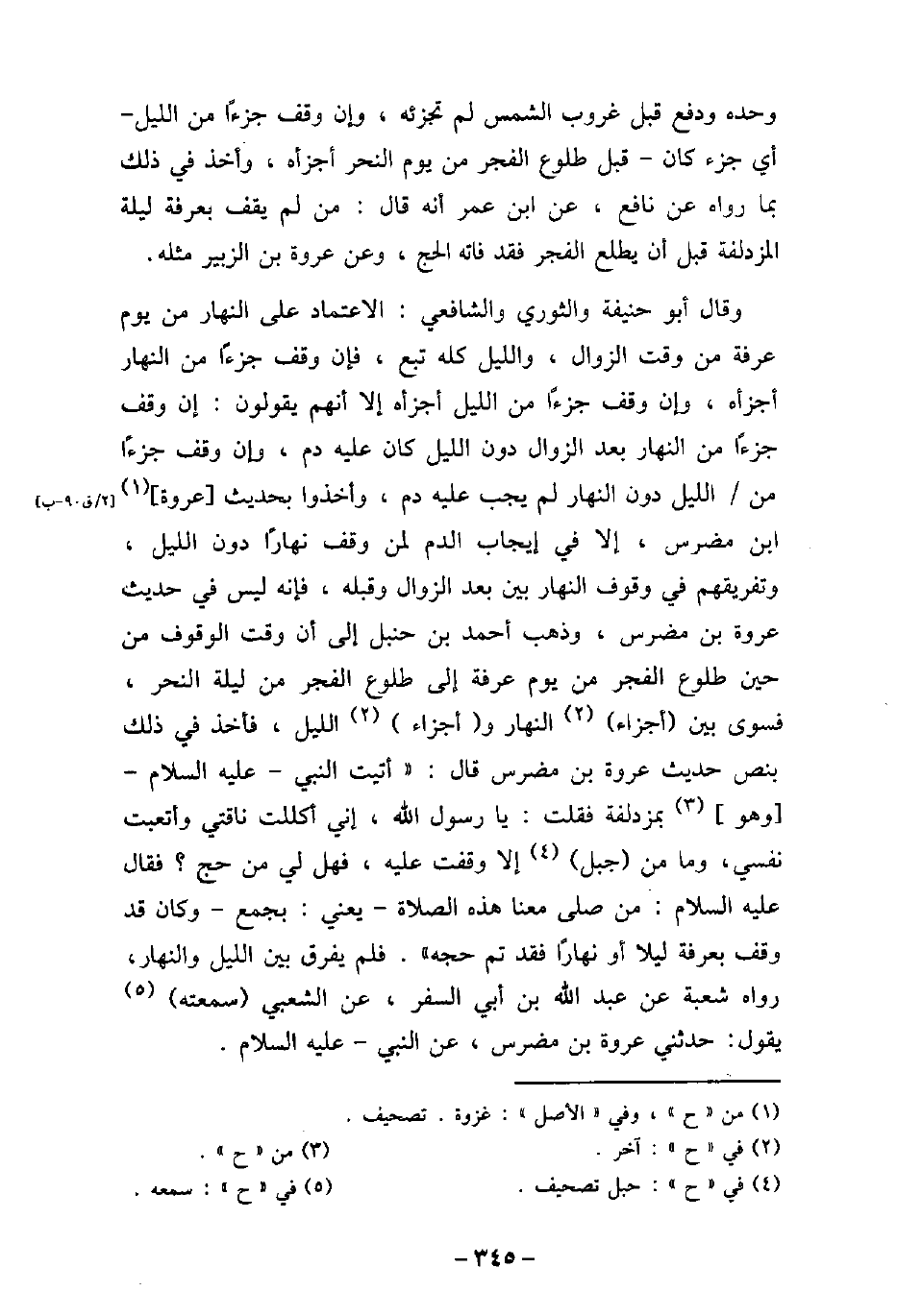 وحده ودفع قبل غروب الشمس لم تجزئه، وإن وقف جزءًا من الليل، أى جزء كان، قبل طلوع الفجر من يوم النحر أجزأه، وأخذ فى ذلك بما رواه عن نافع، عن ابن عمر أنه قال: من لم يقف بعرفة ليلة المزدلفة قبل أن يطلع الفجر فقد فاته الحج، وعن عروة بن الزبير مثله. وقال أبو حنيفة والثورى والشافعى: الاعتماد على النهار من يوم عرفة من وقت الزوال، والليل كله تبع، فإن وقف جزءًا من النهار أجزأه، وإن وقف جزءًا من الليل أجزأه إلا أنهم يقولون: إن وقف جزءًا من النهار بعد الزوال دون الليل كان عليه دم، وإن وقف جزءًا من الليل دون النهار لم يجب عليه دم، وأخذوا بحديث عروة ابن مضرس، إلا فى إيجاب الدم لمن وقف نهارًا دون الليل، وتفريقهم فى وقوف النهار بين بعد الزوال وقبله، فإنه ليس فى حديث عروة بن مضرس، وذهب أحمد بن حنبل إلى أن وقت الوقوف من حين طلوع الفجر من يوم عرفة إلى طلوع الفجر من ليلة النحر، فسوى بين أجزاء النهار وأجزاء الليل، فأخذ فى ذلك بنص حديث عروة بن مضرس قال: أتيت النبى عليه السلام وهو بمزدلفة فقلت: يا رسول الله، إنى أكللت ناقتى وأتعبت نفسى، وما من جبل إلا وقفت عليه، فهل لى من حج؟ فقال عليه السلام: (من صلى معنا هذه الصلاة، يعنى: بجمع، وكان قد وقف بعرفة ليلا أو نهارًا فقد تم حجه) . فلم يفرق بين النهار والنهار، رواه شعبة عن عبد الله بن أبى السفر، عن الشعبى سمعته يقول: حدثنى عروة بن مضرس، عن النبى عليه السلام.