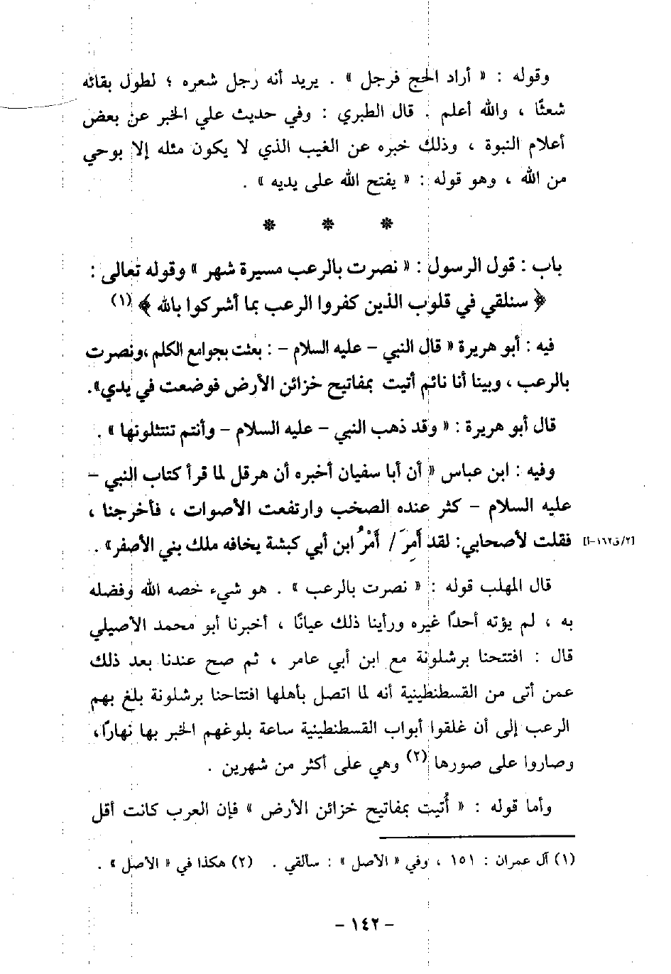 1 - باب قَوْلِ الرسول: (نُصِرْتُ بِالرُّعْبِ مَسِيرَةَ شَهْرٍ) ، وَقَوْلِهِ تَعَالَى: (سَنُلْقِى فِى قُلُوبِ الَّذِينَ كَفَرُوا الرُّعْبَ بِمَا أَشْرَكُوا بِاللَّهِ) [آل عمران: 151]