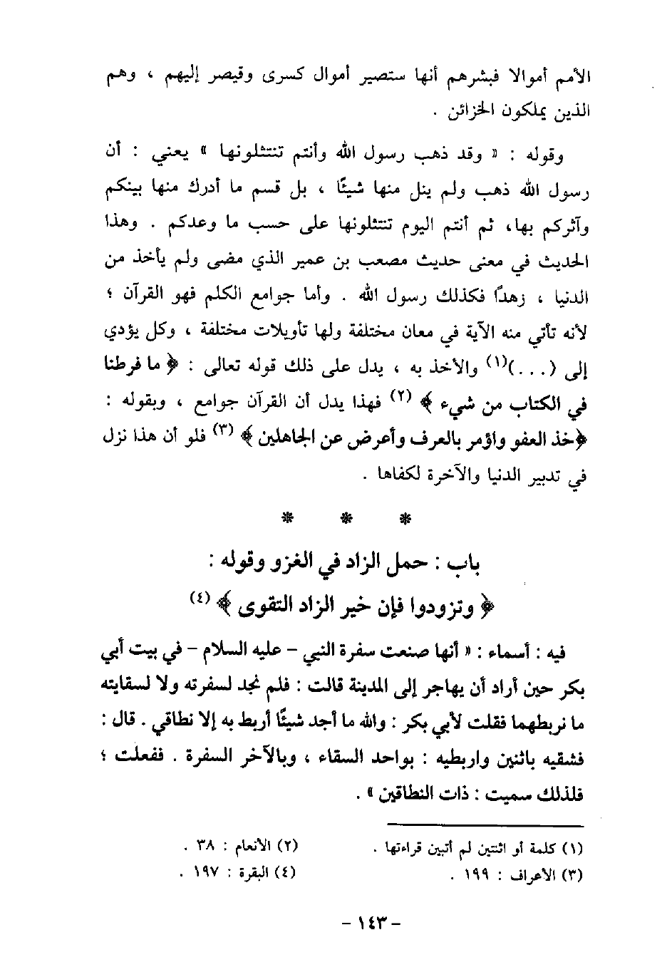 2 - باب حَمْلِ الزَّادِ فِى الْغَزْوِ وقوله: (وَتَزَوَّدُوا فَإِنَّ خَيْرَ الزَّادِ التَّقْوَى) [البقرة: 197]