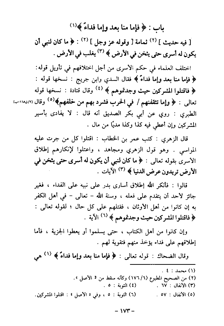 7 - باب) فَإِمَّا مَنًّا بَعْدُ وَإِمَّا فِدَاءً) [محمد: 4]